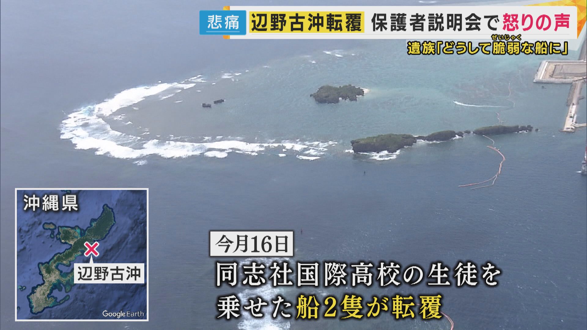 沖縄県の辺野古沖で船が転覆し修学旅行中の高校生が死亡した事故。24日に開かれた保護者説明会では、学校側への怒りの声が相次ぎました。