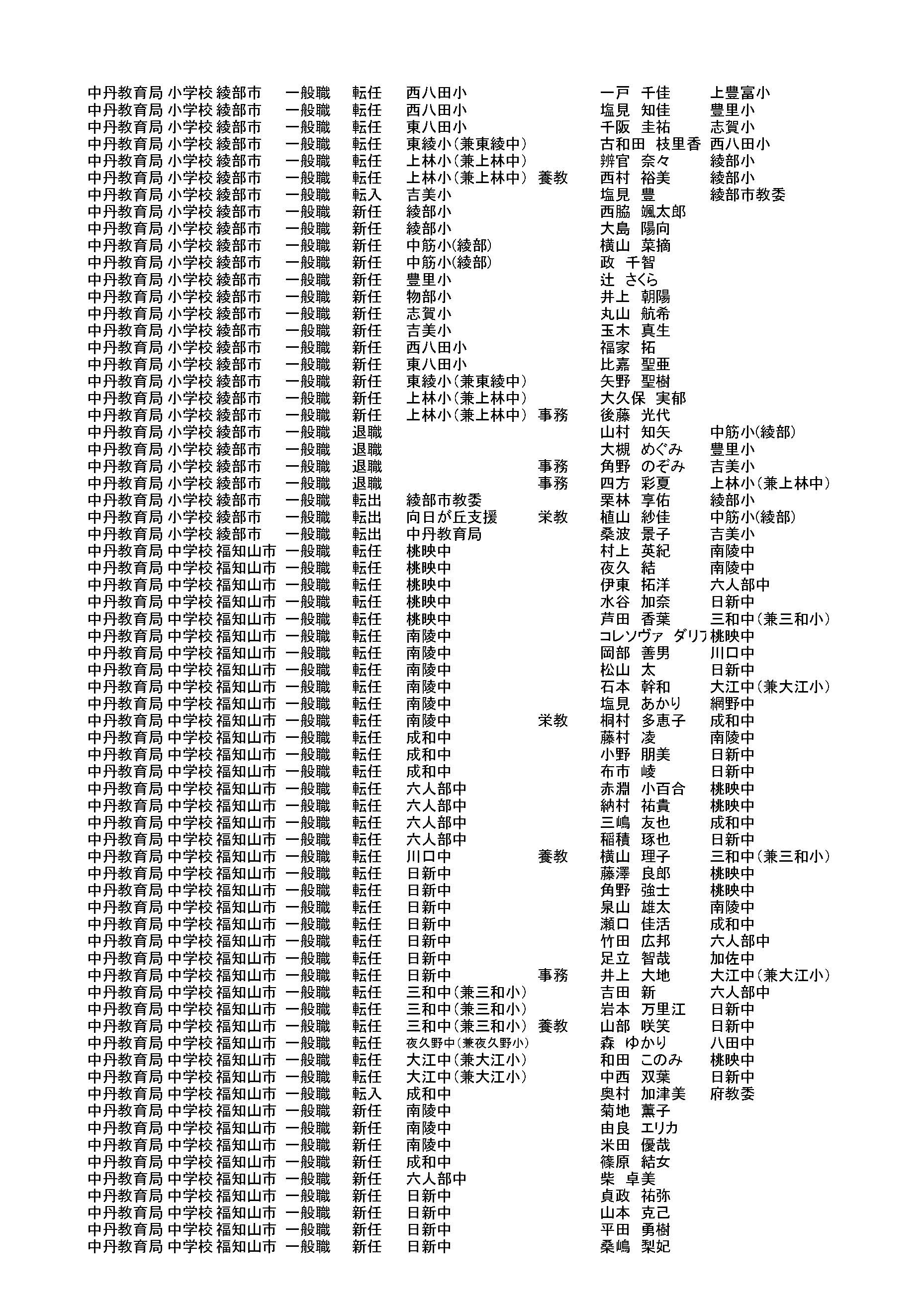 南丹教育局・中丹教育局・丹後教育局の異動情報です。