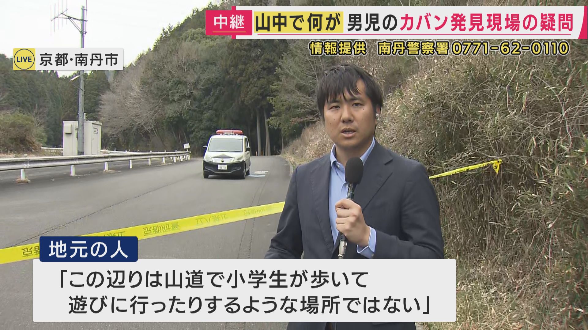 安達さんの通学かばんが見つかった京都府南丹市の現場から、川崎晋平記者の報告です。