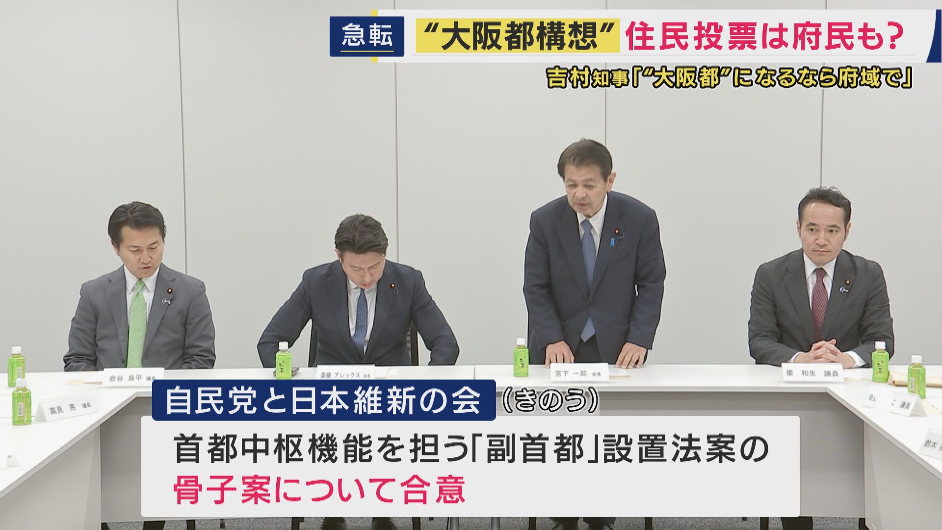 大阪都構想の住民投票“府域全体”で実施か 維新・吉村代表が言及「副首都は大阪府域全体に関わることなので筋が通っている」04月01日 19:56