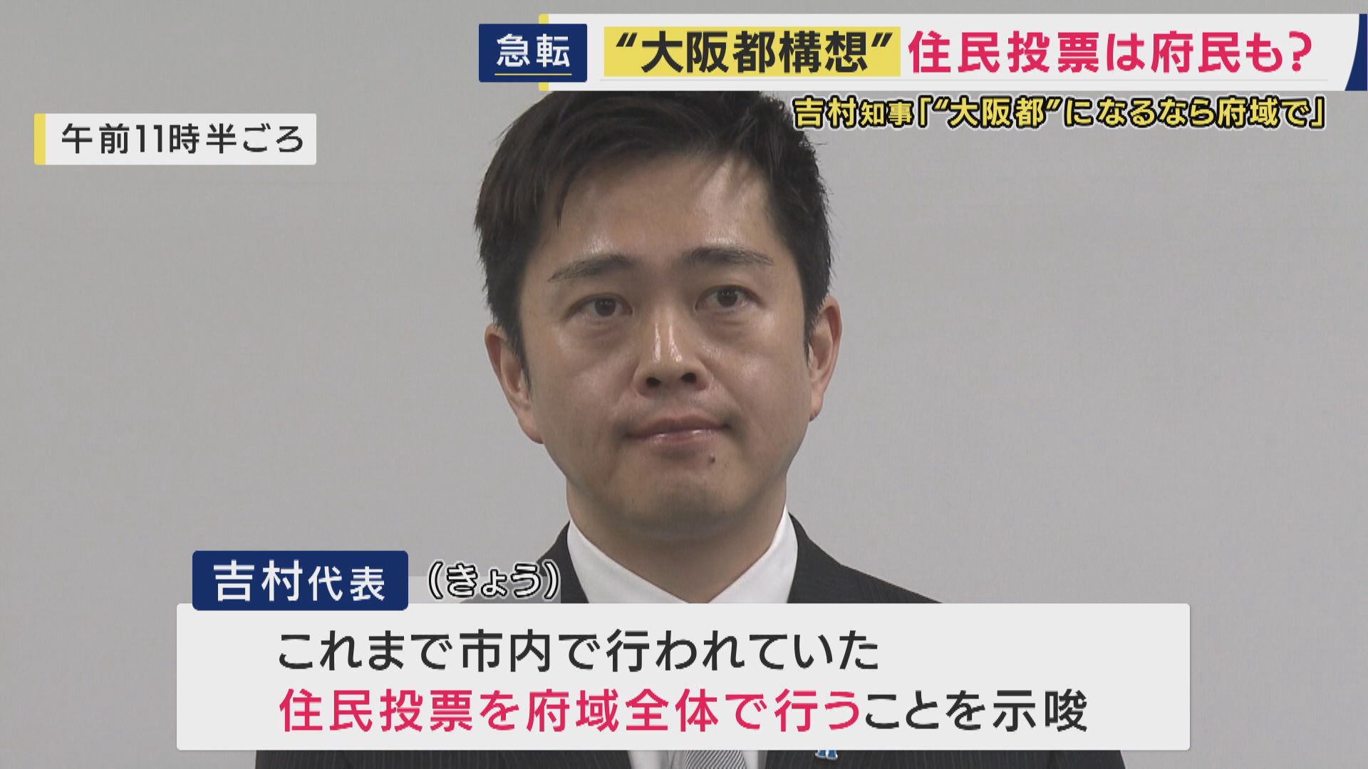 日本維新の会の吉村代表は、いわゆる「大阪都構想」にむけた住民投票の実施範囲について、府域全体とする可能性を示唆しました。