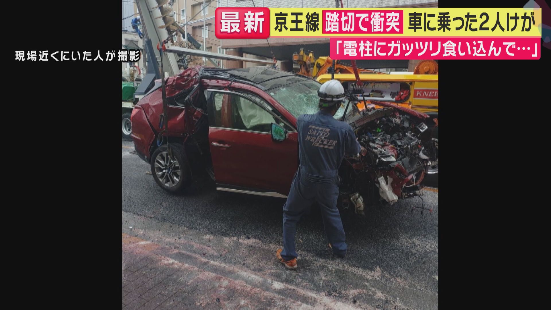 東京都府中市にある京王線・東府中駅近くの踏切で、午前5時半ごろ、走行中の電車と乗用車が衝突する事故が発生した。