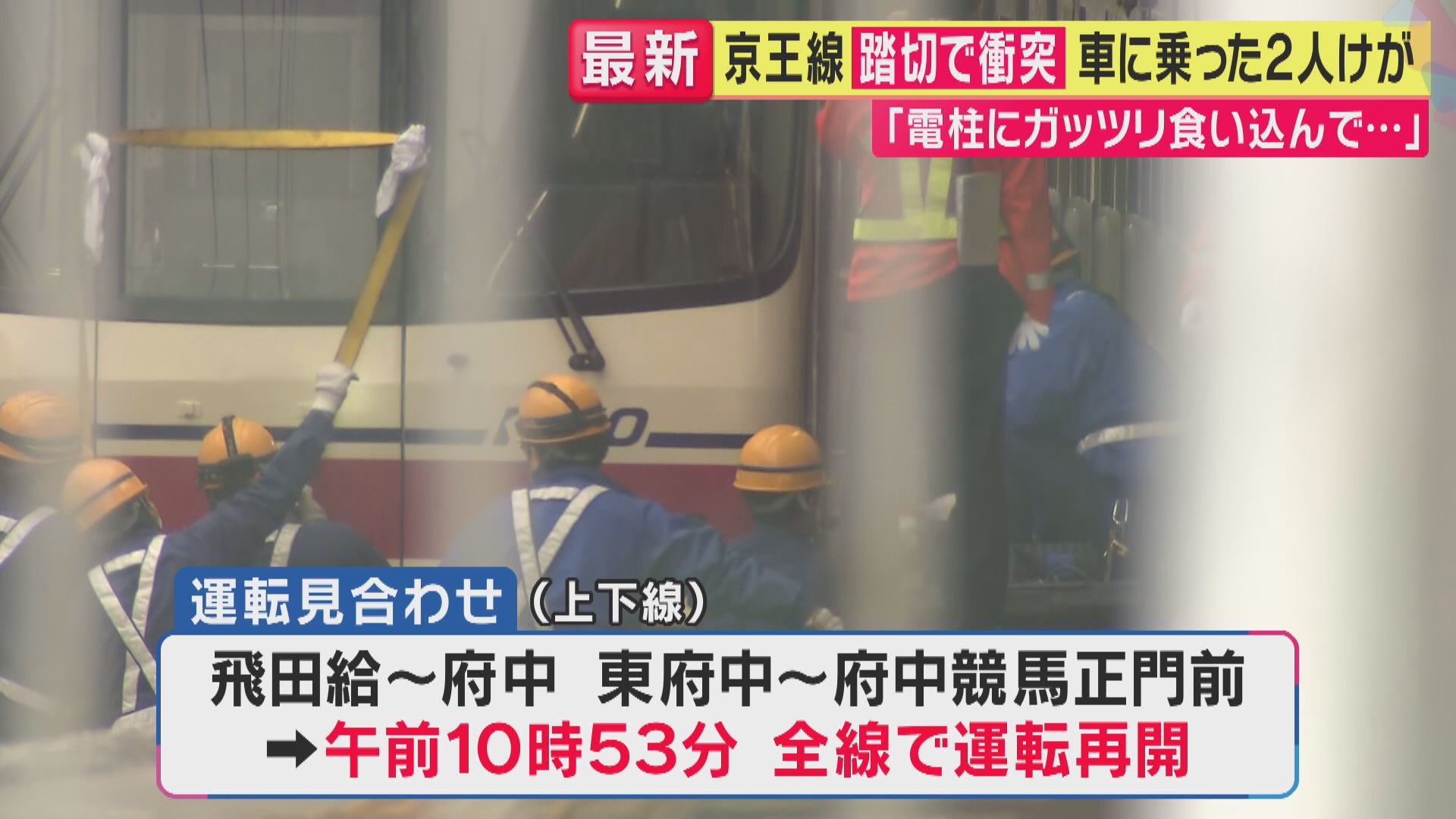 この事故の影響で、飛田給〜府中間および東府中〜府中競馬正門前間の上下線で運転を見合わせていたが、午前10時53分に全線で運転が再開された。傾いた電柱は下部を切断し、新しい電柱に差し替える復旧作業が現場で続けられている。