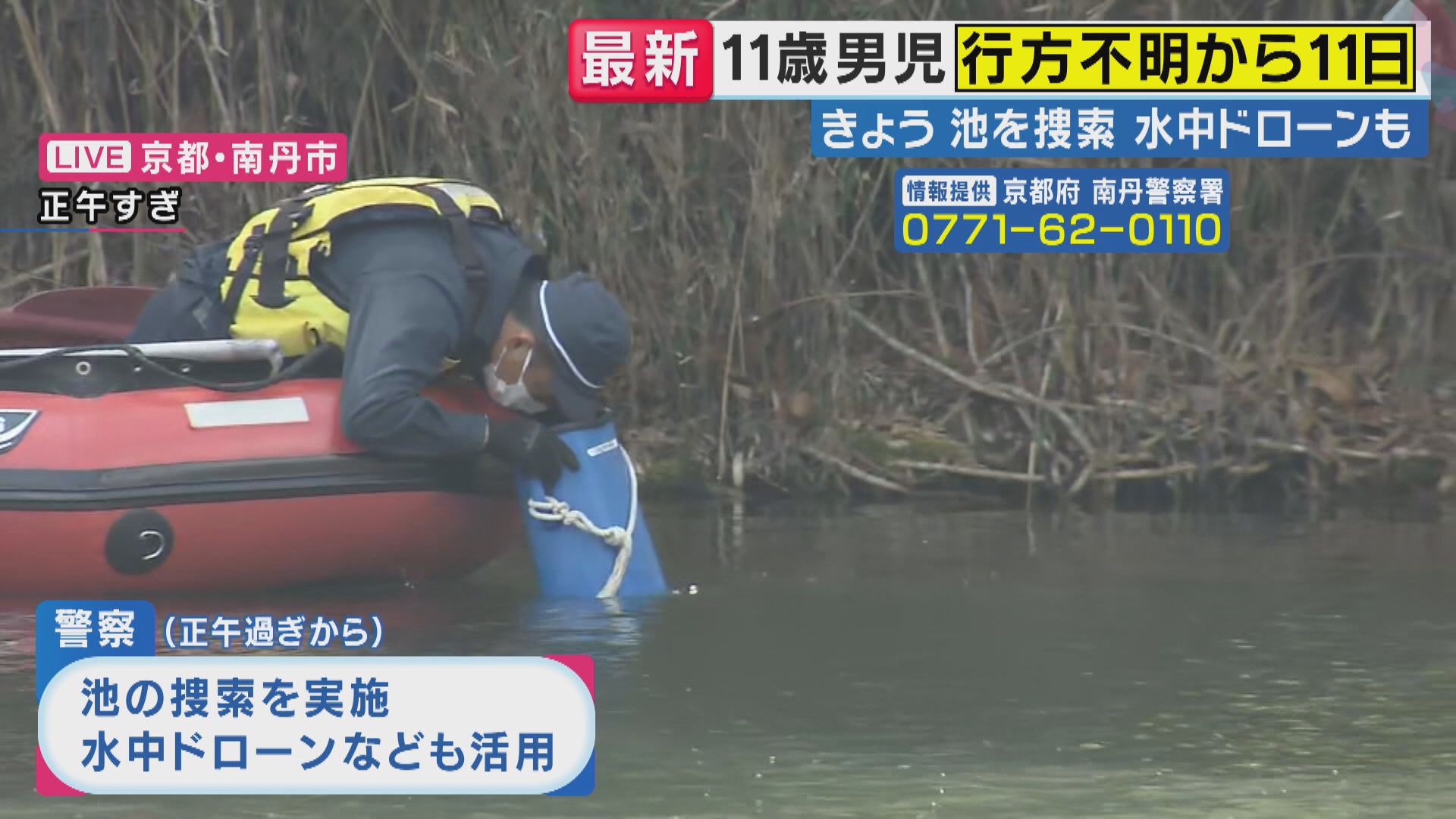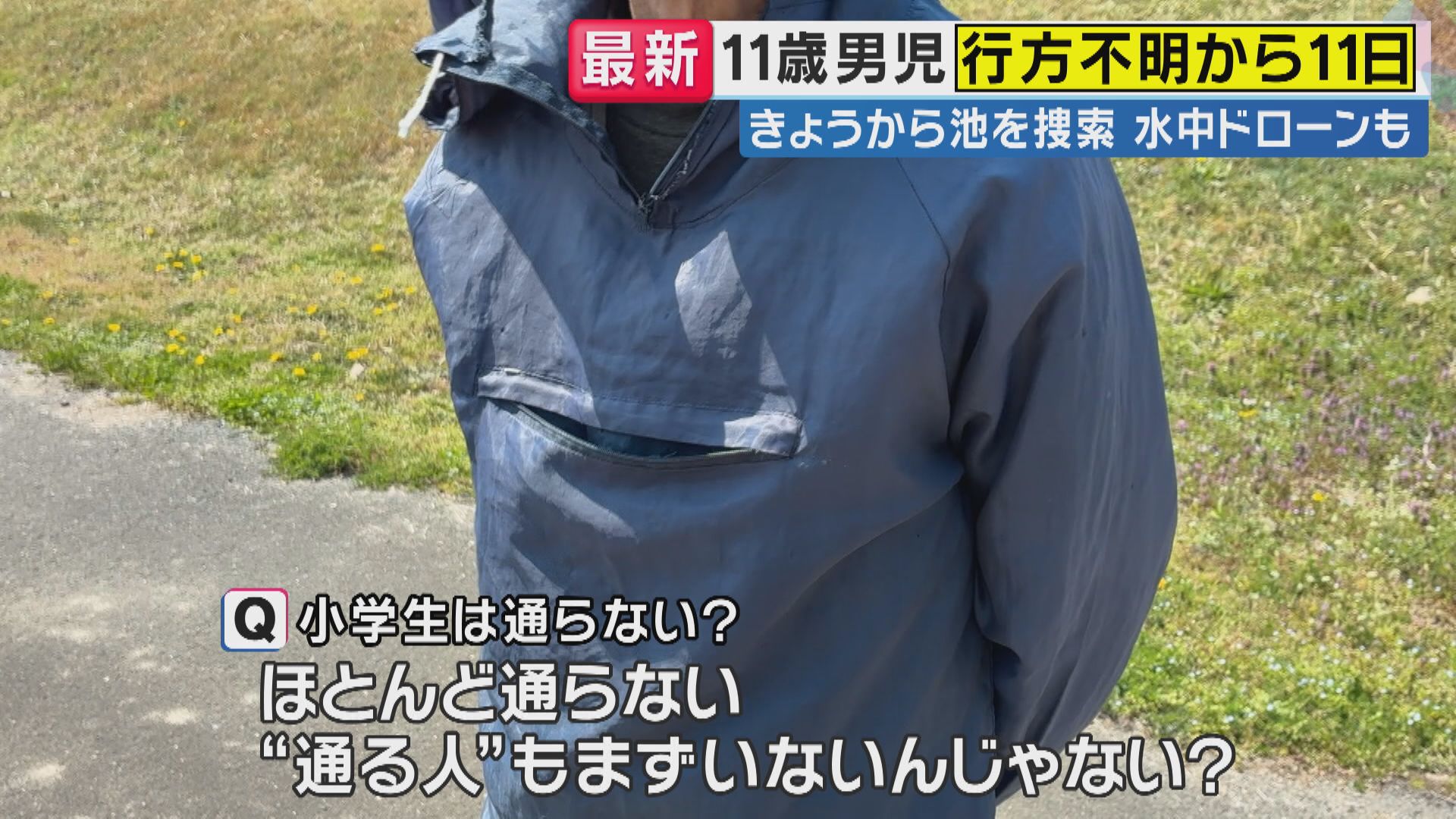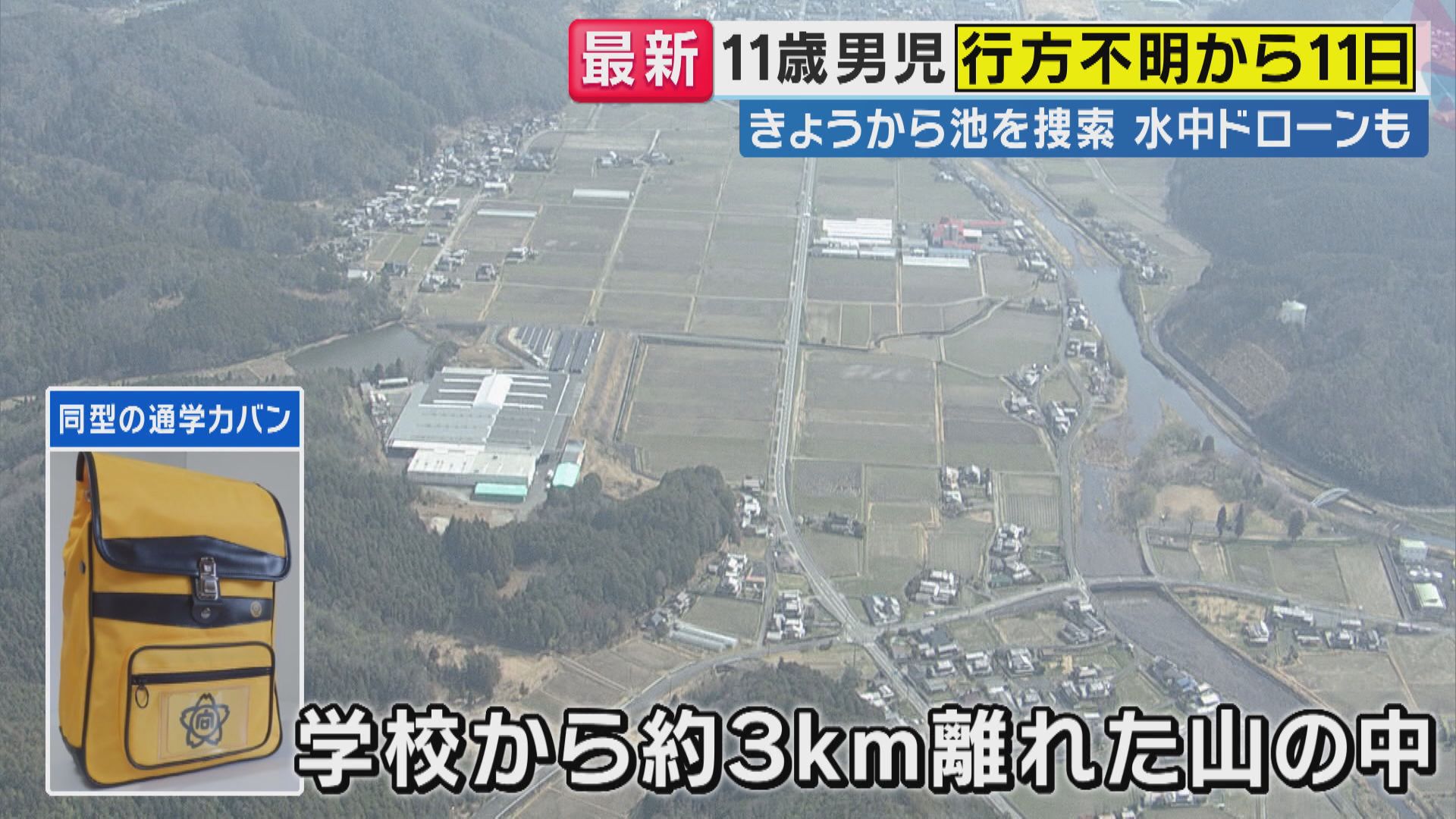 【速報】「通学カバン発見された場所付近の池に『水中ドローン投入』し捜索」11歳男子児童 行方不明から11日 有力な手がかりない中 警察の捜索が続く04月03日 18:44