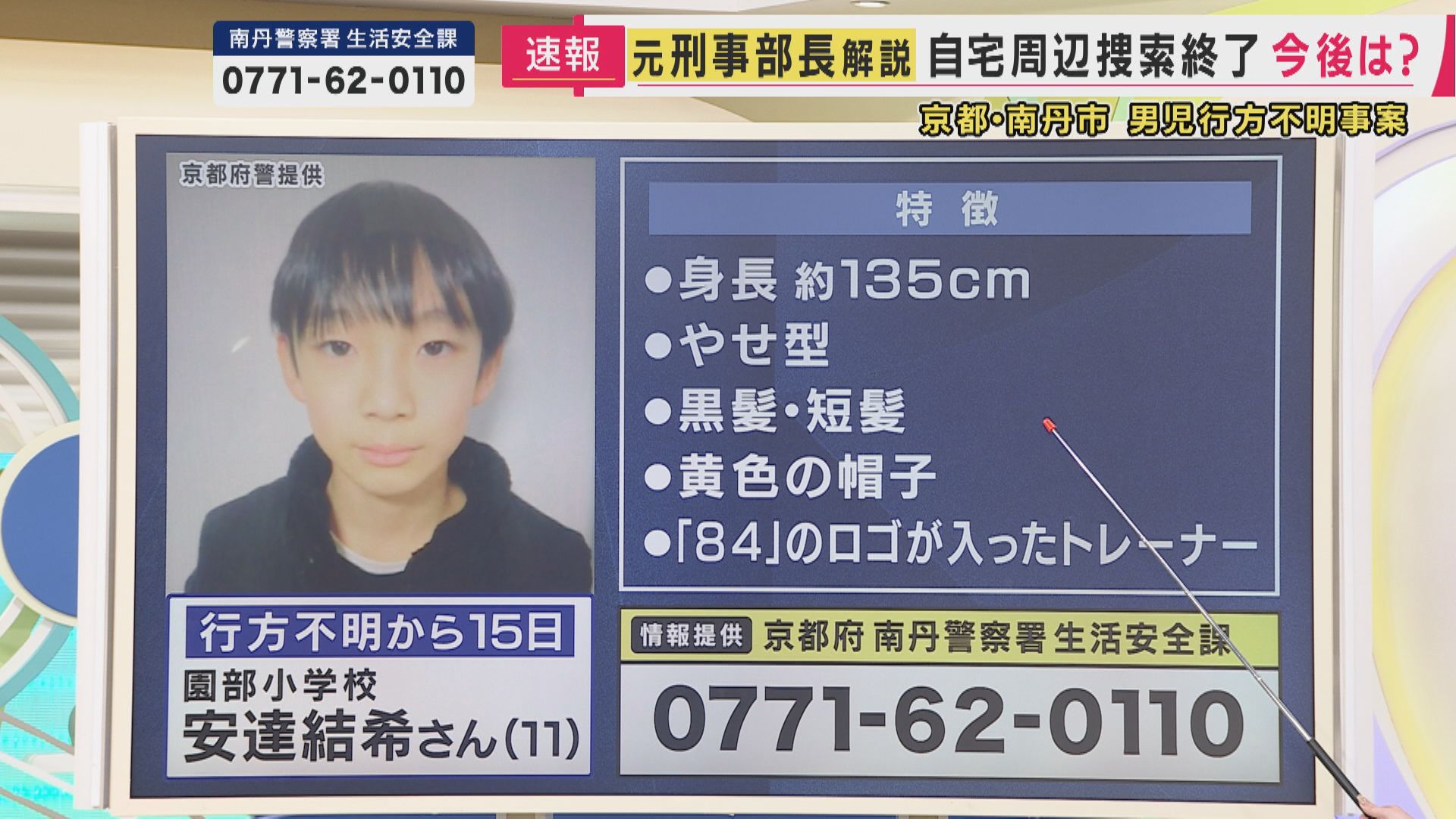 南丹市立園部小学校に通う安達結希さん(11)が行方不明となって15日。