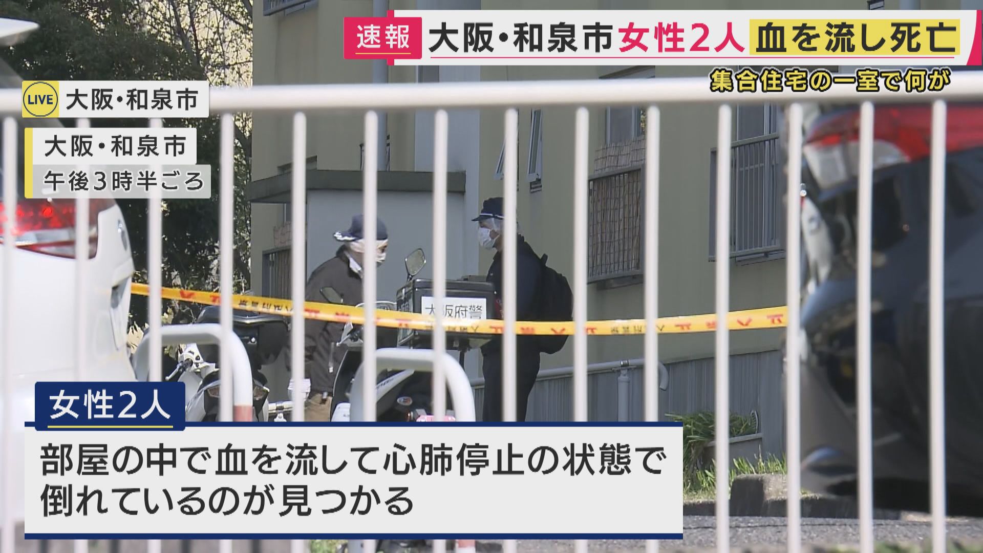 きょう(8日)正午過ぎ、大阪府和泉市の集合住宅で女性2人が血を流して倒れているのが見つかり、その後、死亡が確認されました。