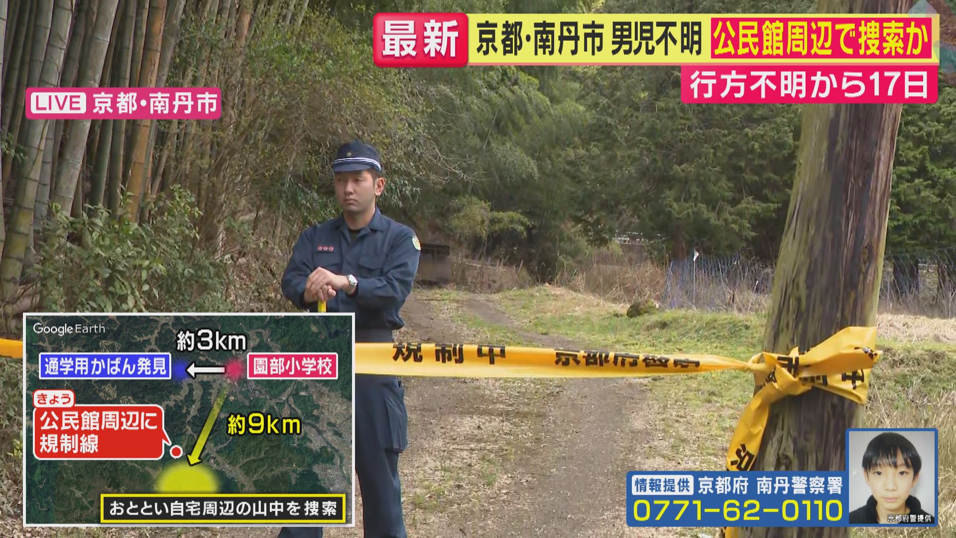 【現場報告】地元の人「1年に1度行くか行かないかの場所」男子児童行方不明から17日 警察が“公民館周辺”を捜索か きょうは50人態勢で捜索 京都・南丹市04月09日 21:34