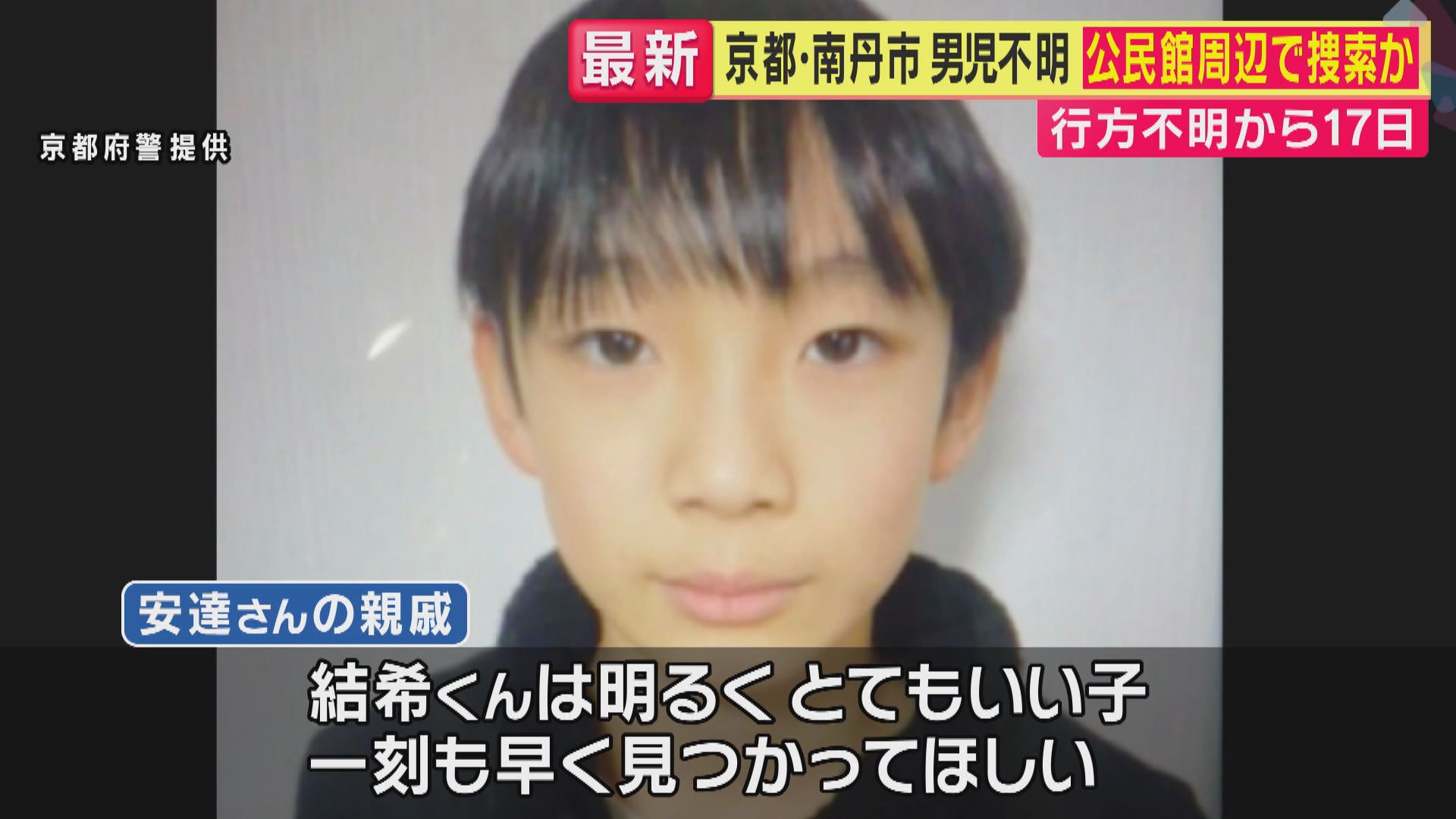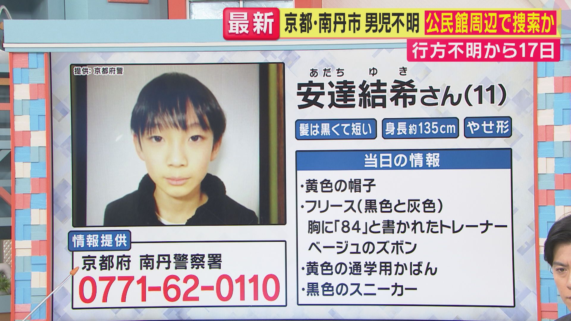 先月23日、京都府南丹市の園部小学校に通う安達結希さん(11)が行方不明になりました。