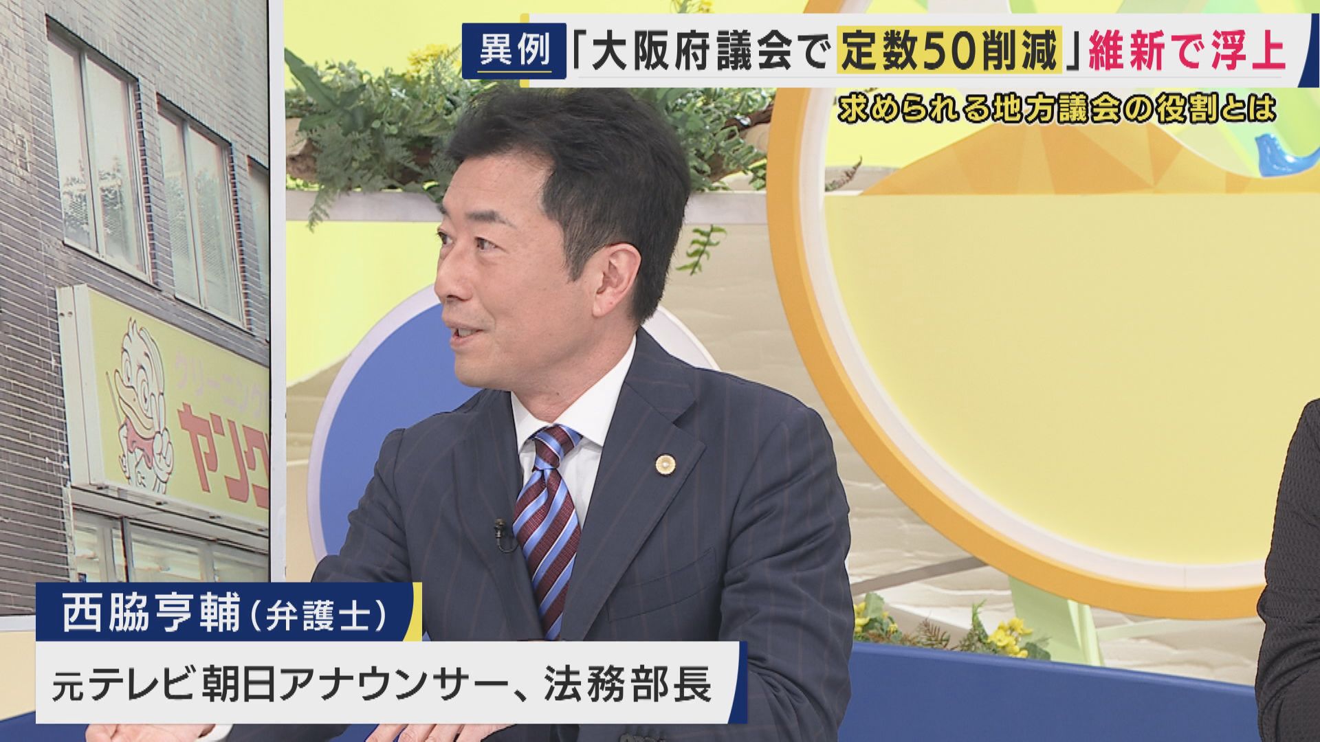 元テレビ朝日アナウンサー・法務部長の西脇亨輔弁護士は、今回の維新の議員定数削減案について、「ロンドンの議会は25人が定数だが、大阪とロンドンでは仕組みが違う。数ありきというのは順番が違うのでは」と指摘しました。
