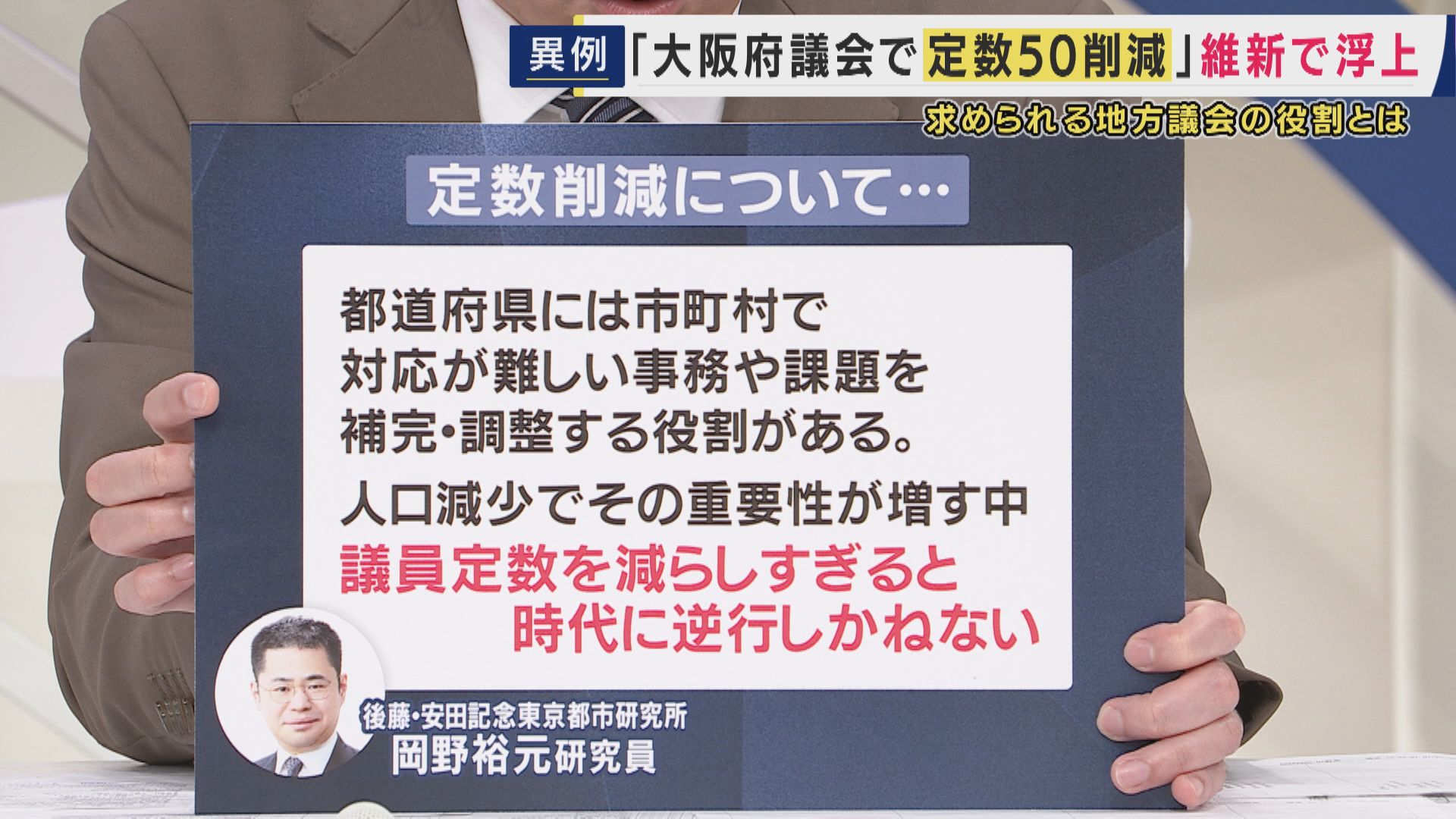 また地方政治に詳しい、後藤・安田記念東京都市研究所の岡野裕元研究員は、議委定数削減について、次のように指摘しました。