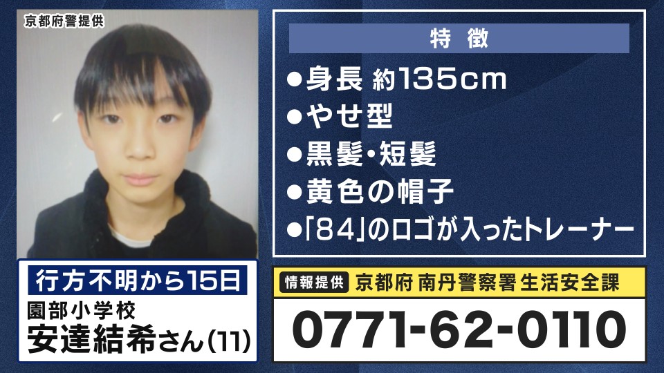 京都府南丹市で、行方不明となっている男子児童のものとみられる靴が、きのう(12日)、山の中から見つかったことがわかりました。