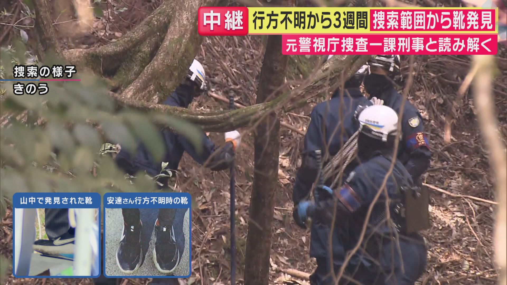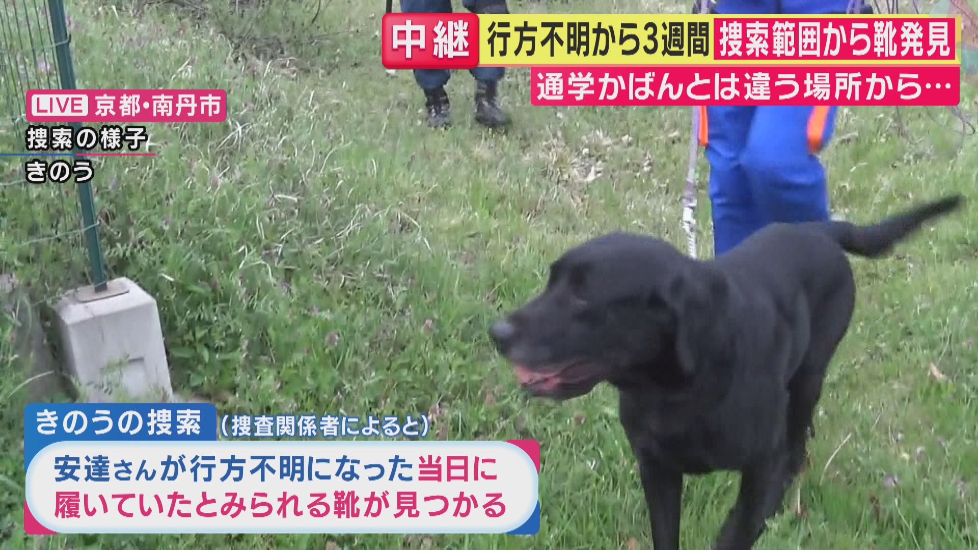 12日には、安達さんが通う園部小学校からおよそ6キロ離れた山中で、安達さんが行方不明になった当日に履いていたとみられる靴が新たに発見されました。