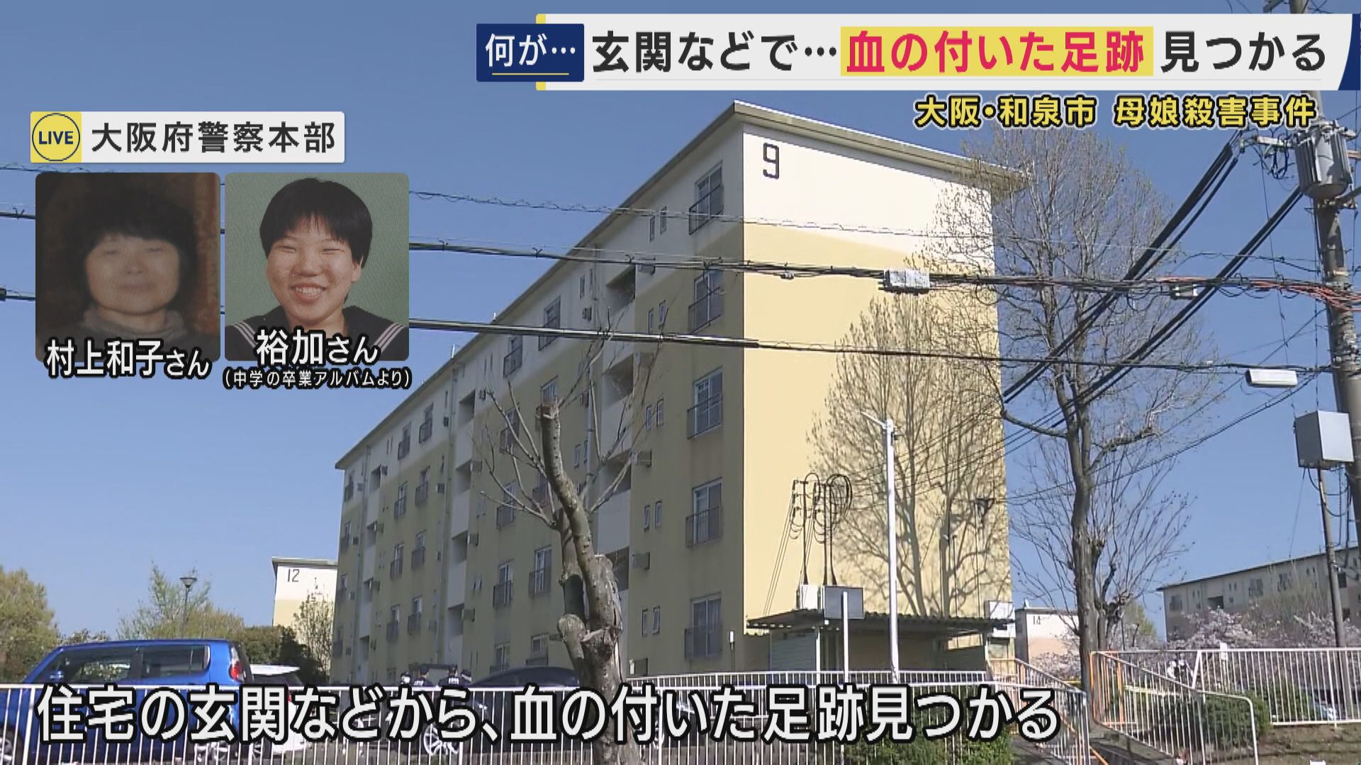 大阪府和泉市で母親と娘が殺害された事件で、住宅の玄関などに血の付いた足跡が残っていたことが分かりました。最新捜査情報を大阪府警担当・宇都宮雄太郎キャップの報告です。