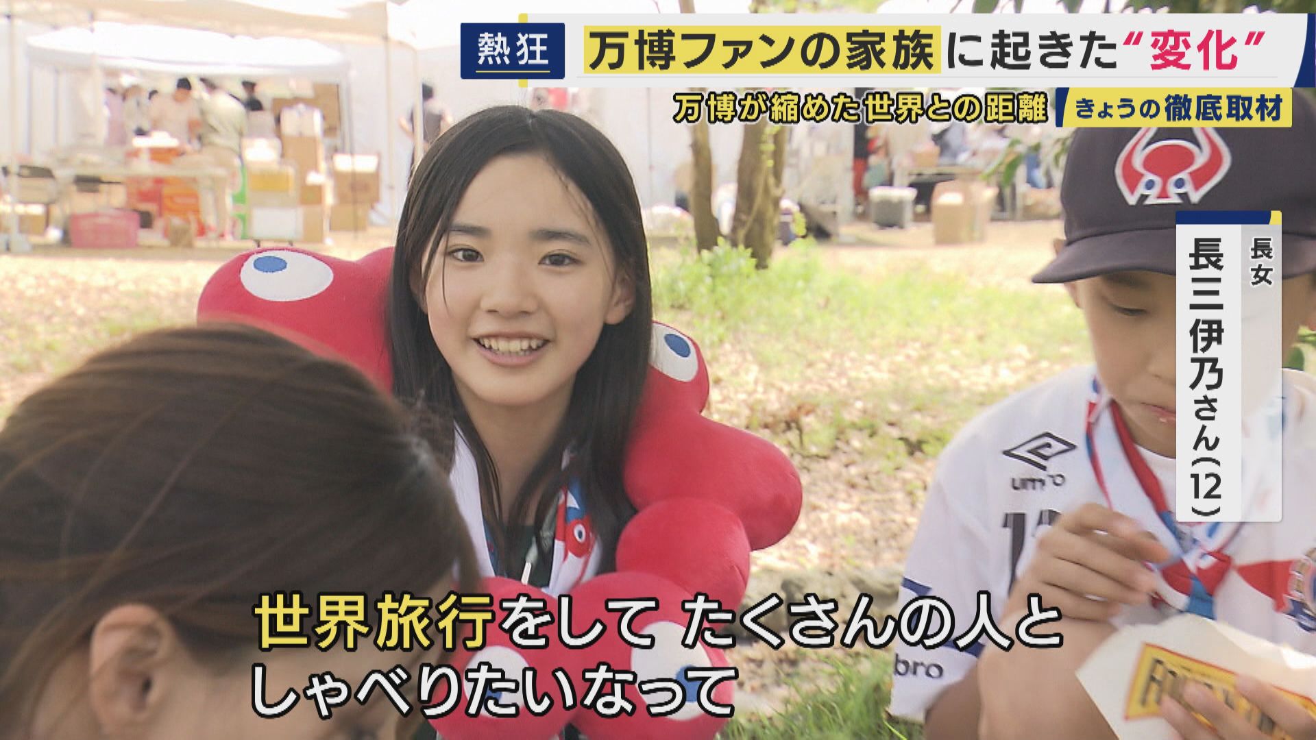【長女・伊乃さん(12)】「世界とか旅行行って、なんかたくさんの人としゃべりたいなって、万博を通じて思いました。同じ言語でしゃべって、日本語じゃなくてまた、その国の言葉で」