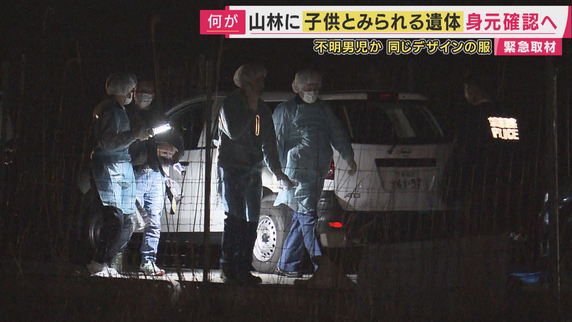 このおよそ4時間半前、きのう午後4時45分ごろ、小学校から南西に2キロほど離れた山林で、あおむけに倒れた小柄な遺体が発見された。子供の遺体だとみられている。警察によると、遺体は死後相当の日数が経過しており、濃紺のフリースにベージュの長ズボンを身に着け、靴ははいていなかったという。