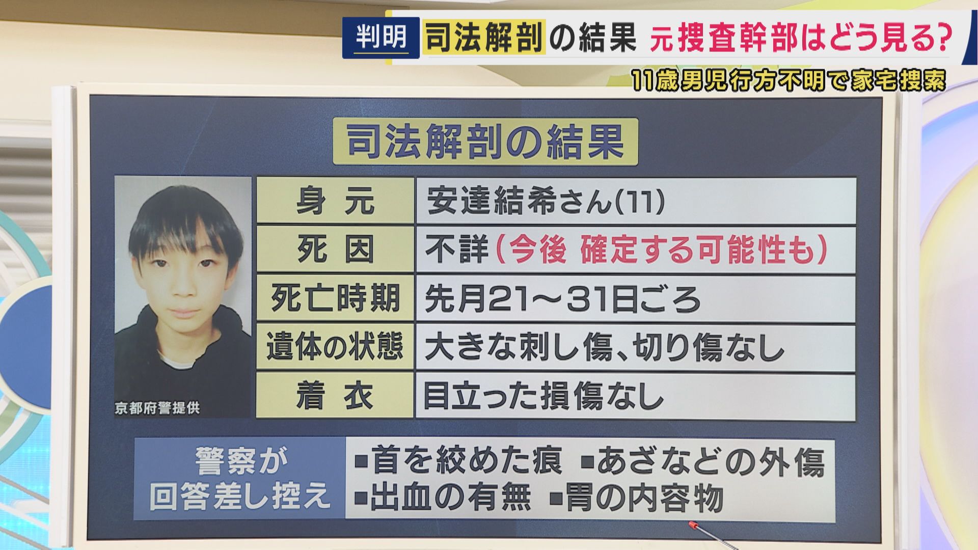 14日に判明した司法解剖の結果について、京都府警捜査一課長の樋口文和さん、元静岡県警科捜研の中山誠さんが解説しました。