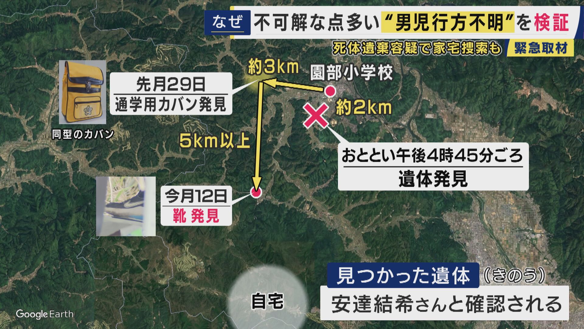 13日夕方、小学校から南西におよそ2キロ離れた山林で子どもとみられる遺体が発見され、14日に安達さんと確認されました。