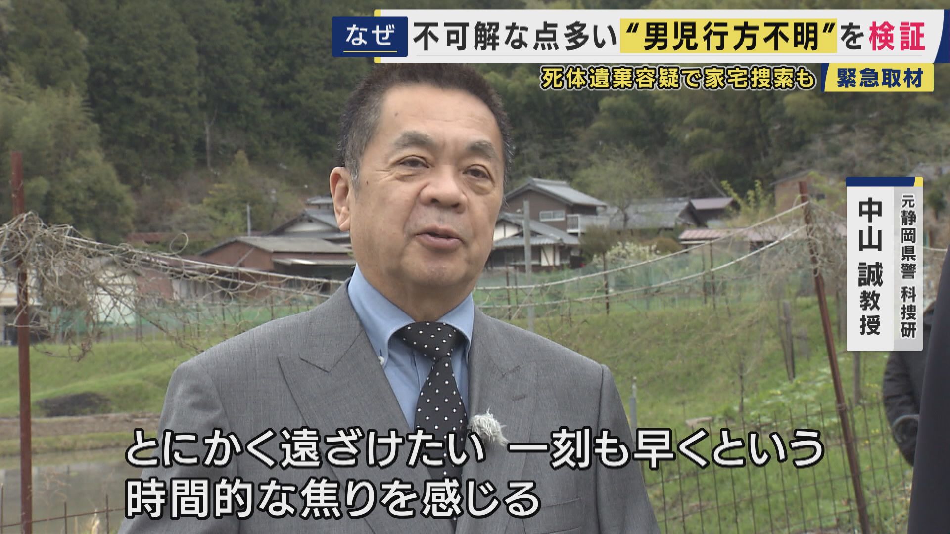 【元静岡県警・科捜研 中山誠教授】「意外というか、見通しがきくというか、かなり遠くからでも見える。ご遺体を早く自分の車から遠ざけたい、焦ってギリギリの気持ちで運んだんじゃないですかね。計画的にするのであれば、もっと山の奥へ行く。一刻も早くという時間的な焦りを感じる」