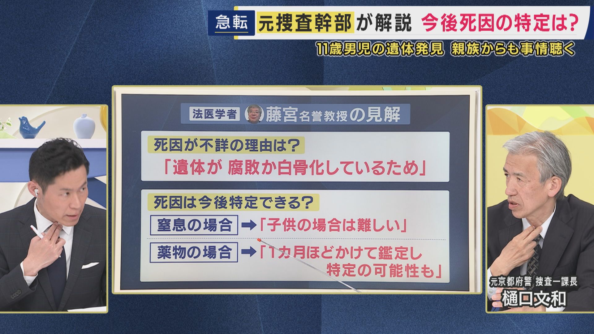 また、元京都府警捜査一課長の樋口文和さんによると、小学校高学年の男の子であれば「抵抗するのではないか」と推測する一方、「薬物などを使用して犯行に及んだ場合は抵抗できないと思う」と指摘しました。