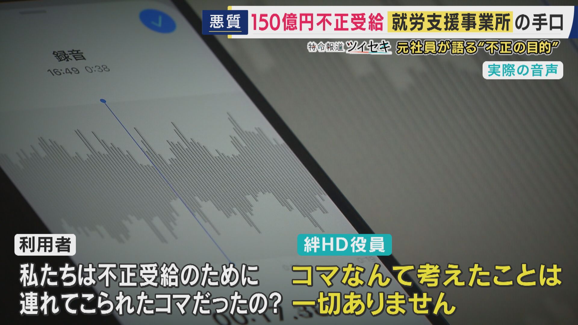 不正受給「約150億円」目的は「お金。役員報酬でタワマン2つ以上・スポーツカー乗って」と元社員 処分の「絆ホールディングス」“支援”実態は「自習で動画見るだけ」 障害者の就労支援事業で相次ぐ不正04月24日 13:17