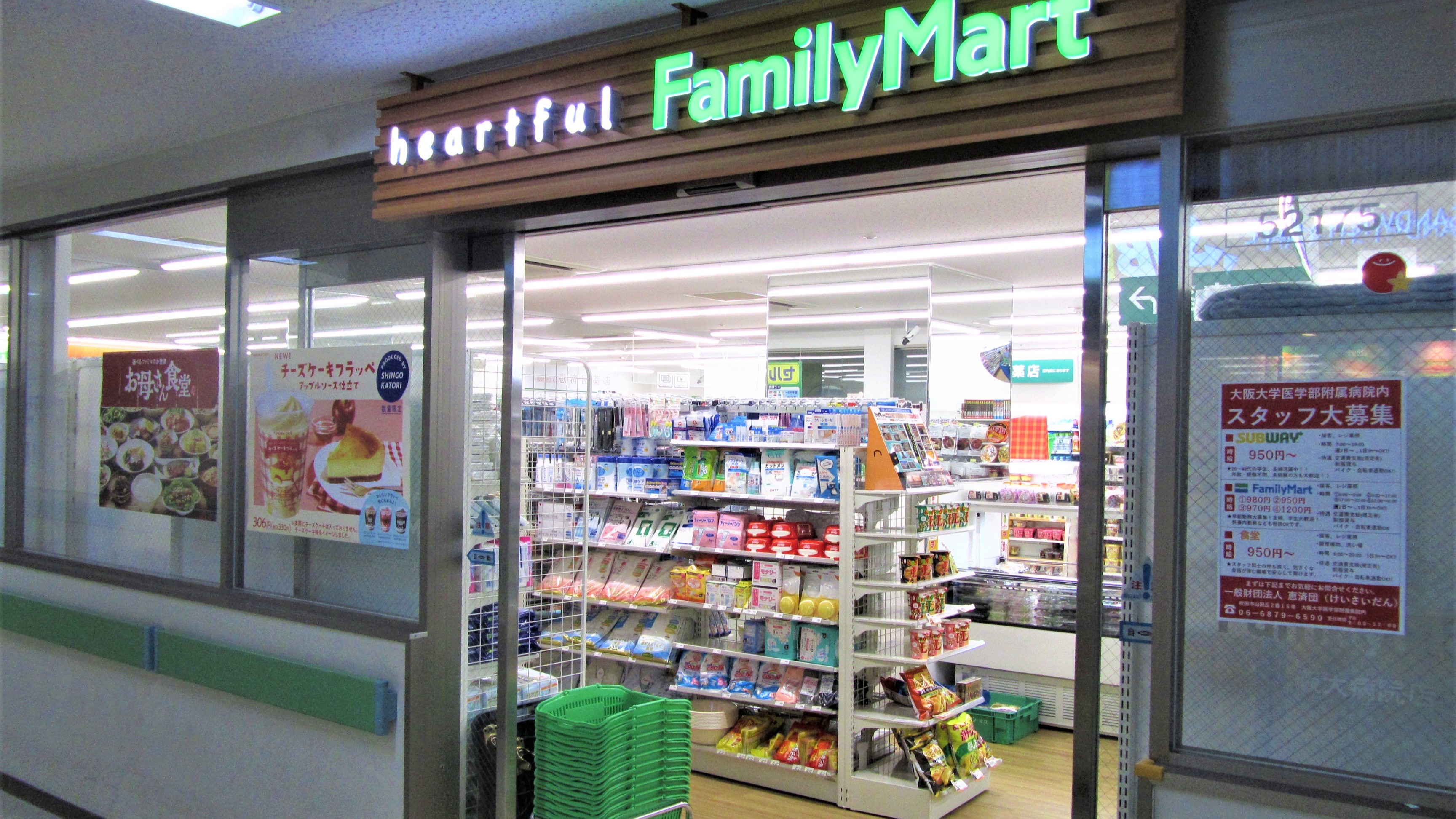 阪大病院にはコンビニやレストラン、カフェ、ファーストフード、美容室、図書コーナー、そして院内郵便局まで、さまざまな施設があります。