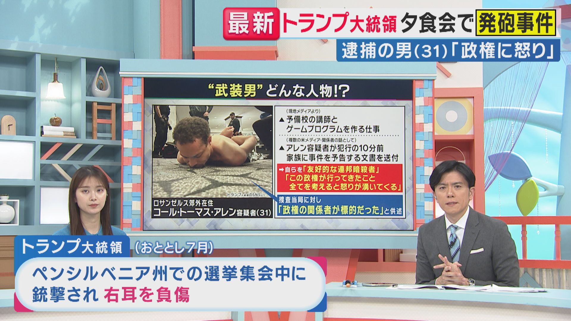一方、番組でコメンテーターを務めていた俳優の石原良純氏は「夕食会は大統領が1時間ぐらいのメッセージを発する場だと聞いた」と述べ、イラン情勢が解決に向かわない中で、トランプ大統領が発するメッセージが重要だったが、「こういう形で終わって残念」と話しました。