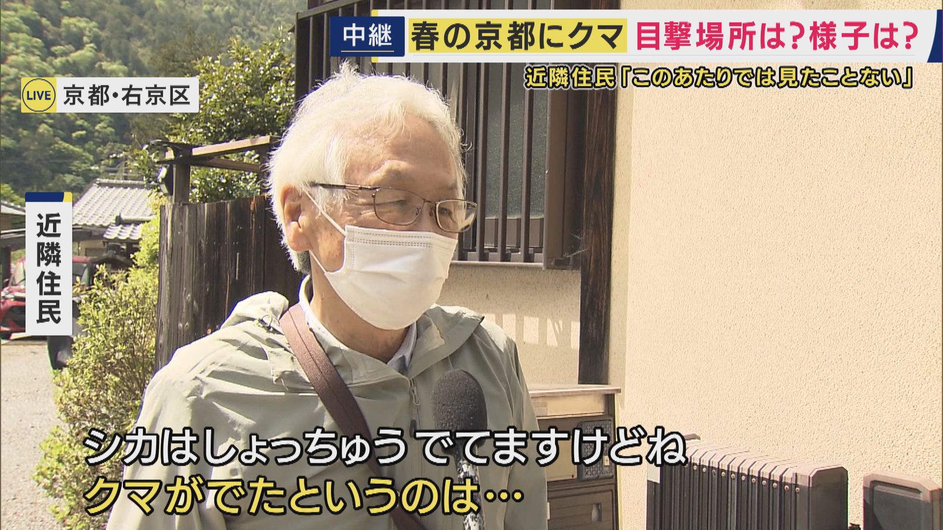 【近隣住民】「はい。シカはしょっちゅうでてますけどね、クマがでたというのは…」