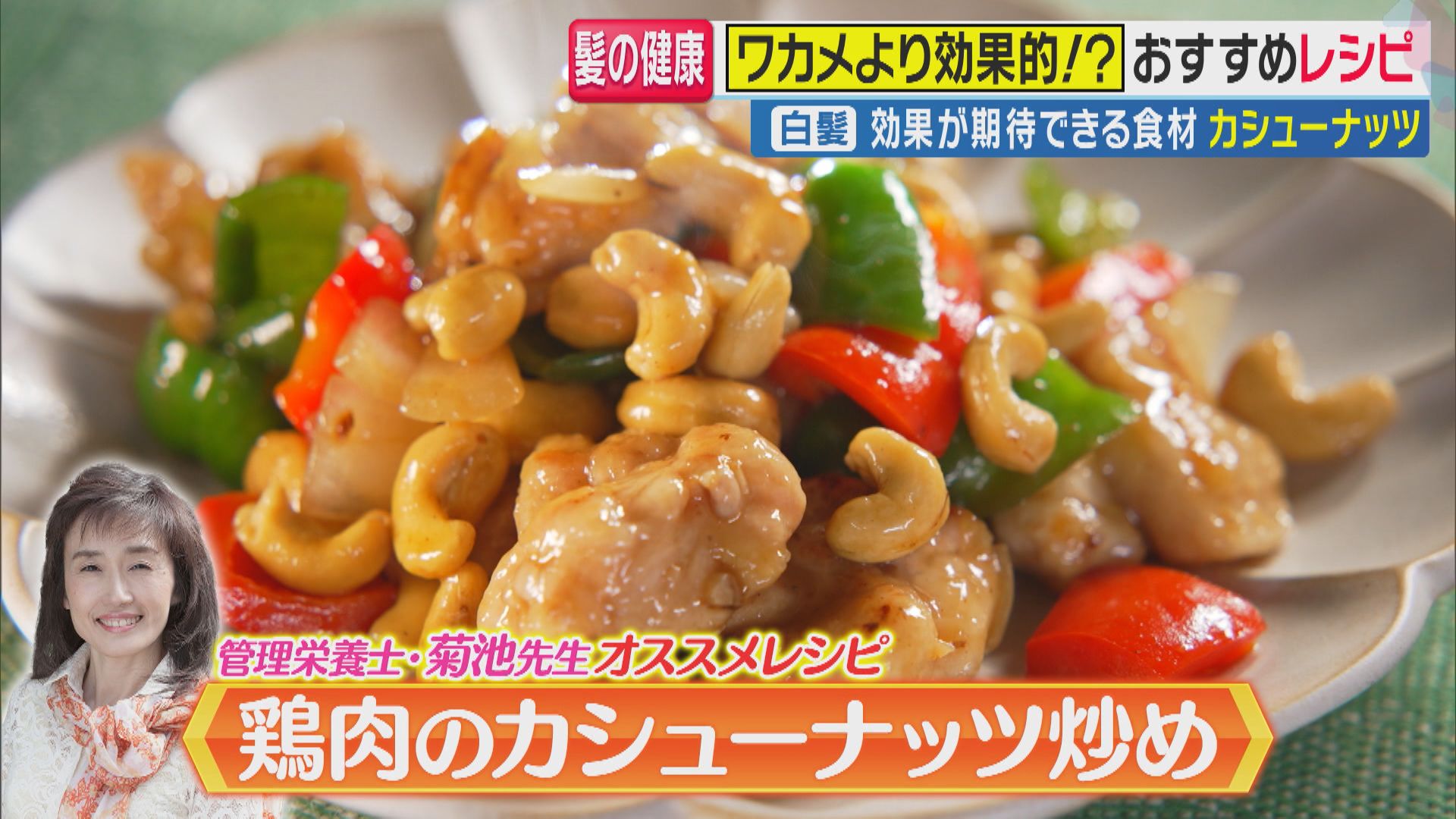 スタジオでは出演者のお悩みを3つに分類。まず白髪に効果が期待できる食材として挙がったのが、"カシューナッツ"でした。