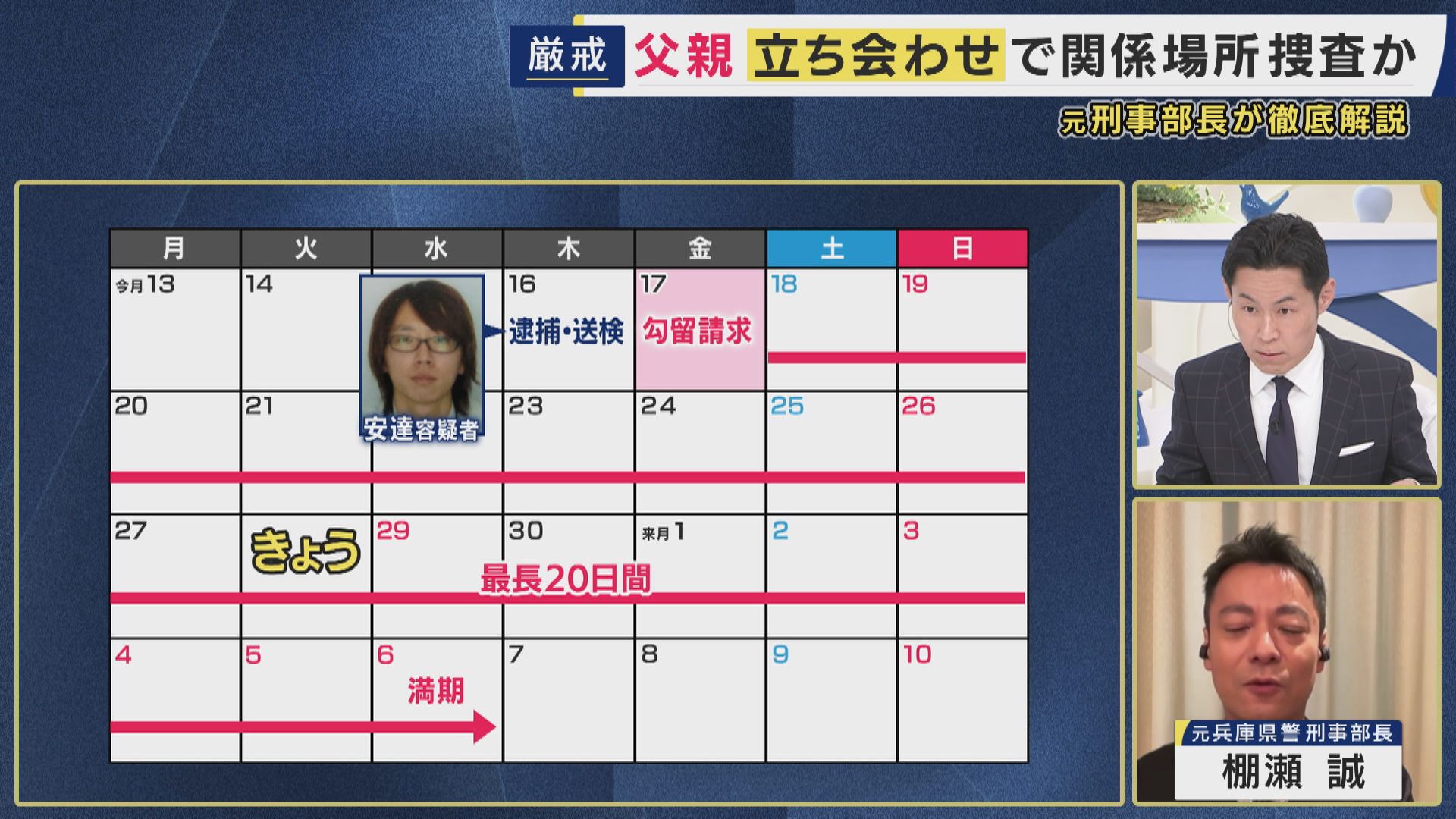 【棚瀬誠氏】「現状は死体遺棄容疑で勾留され、捜査が進んでいます。期間中に死体遺棄容疑を詰めていく作業になる。