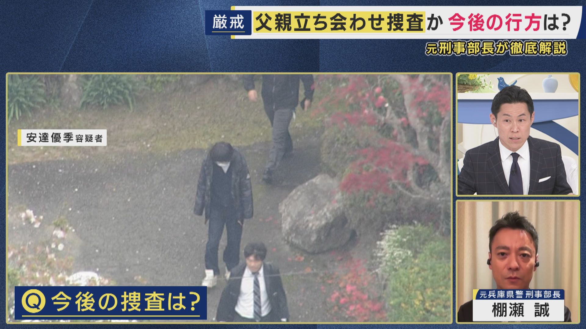 元兵庫県警刑事部長の棚瀬誠氏は「引き当たり捜査」について、容疑者を立ち会わせて供述の信用性を裏付ける捜査だと解説。
