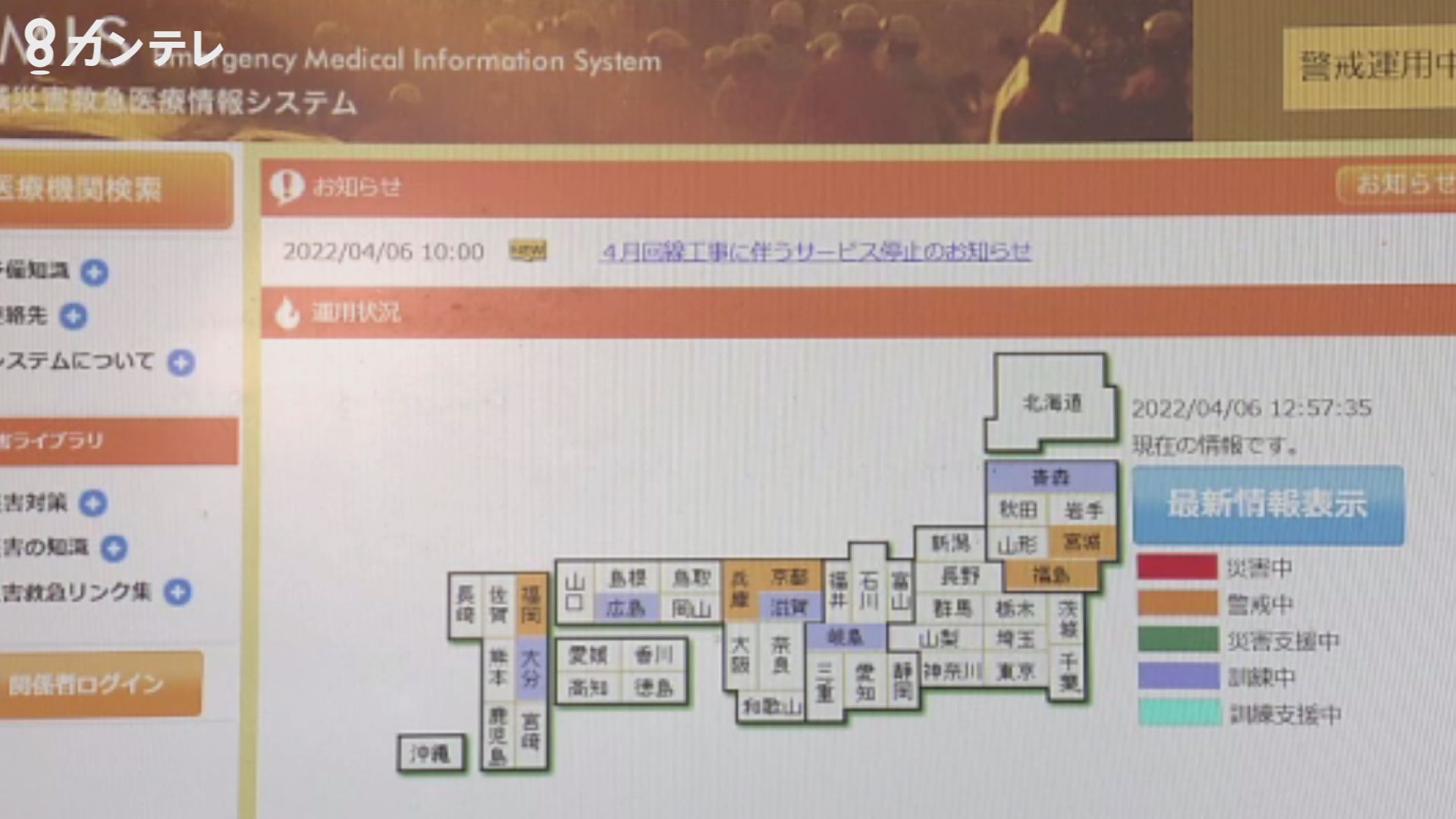 病院の情報を入力する、広域災害救急医療情報システム=「EMIS」。
