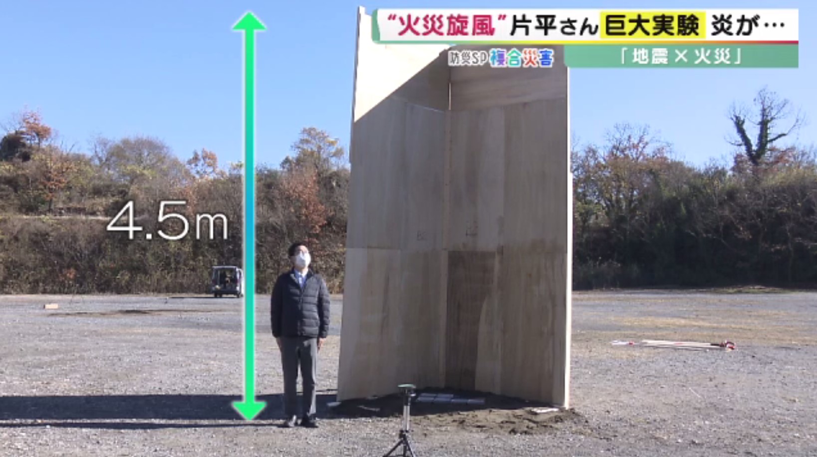 「隙間から風が入りますから回転するように風が流れます。基本的には炎があるところに旋回流、流れが回転するようなものをつくると火災旋風が発生します」