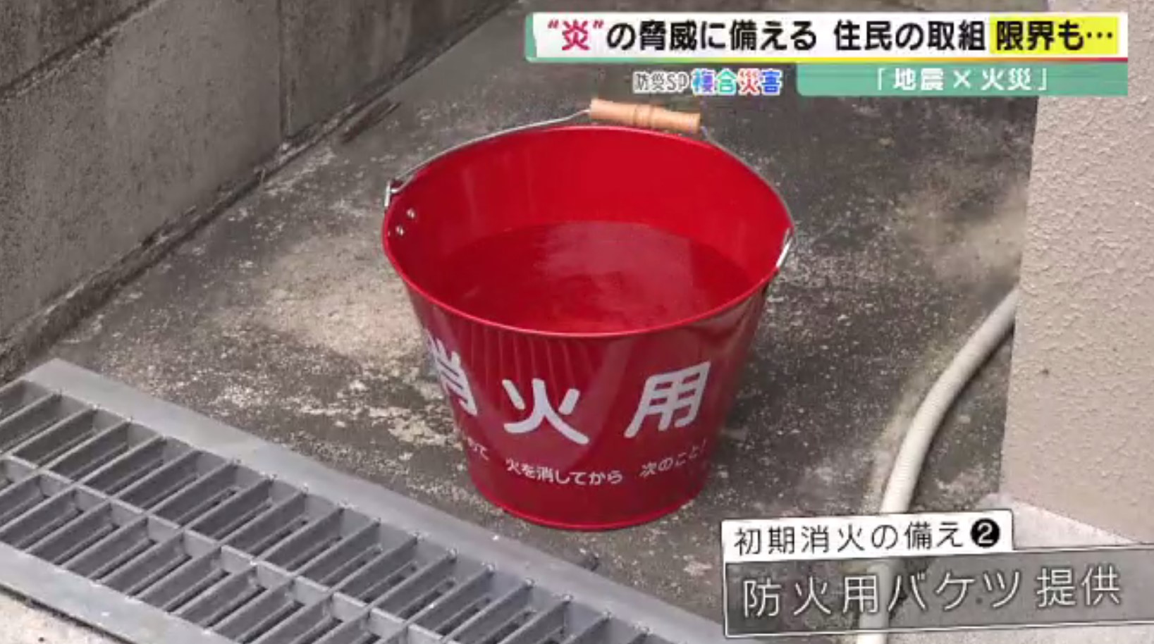 この地域では、初期消火には欠かせない「防火バケツ」を、地域住民全員に配ることにしました。また、バケツは住民たちで3カ月に一度補修するようにしています。