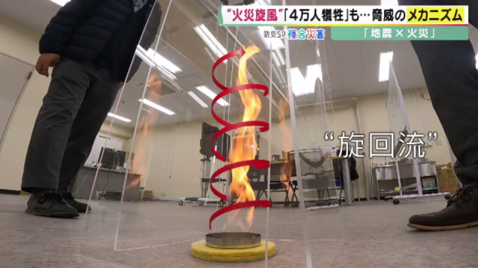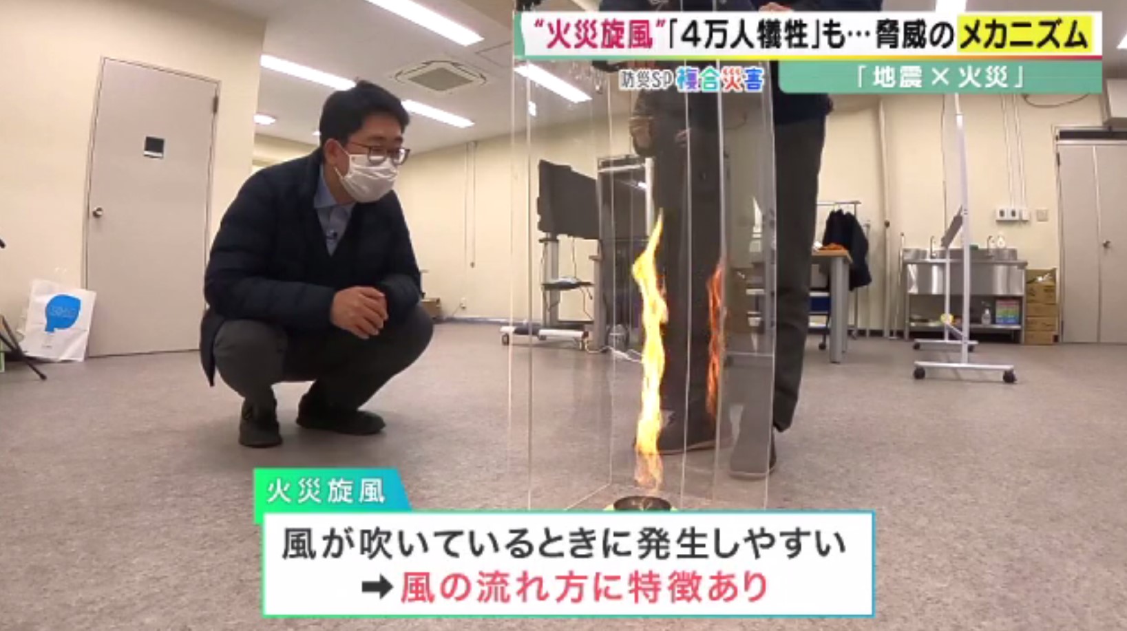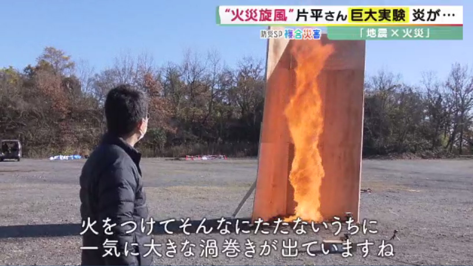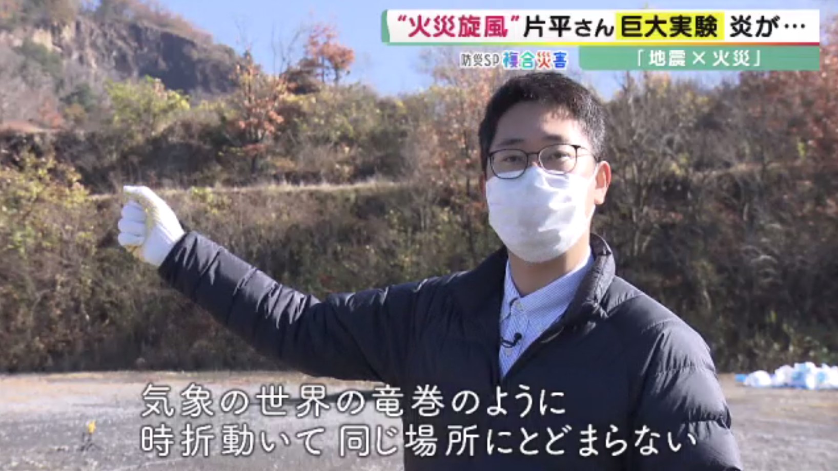 「例えば、寒い地域では地震で家の外に置いてあるオイルタンクが倒れるなどして、大規模火災が起こり、火災旋風が発生する危険もある。様々な発生要因を考えながらも、今後、どのようにしたら火災旋風が起きなくなるのかということも研究していきたい」