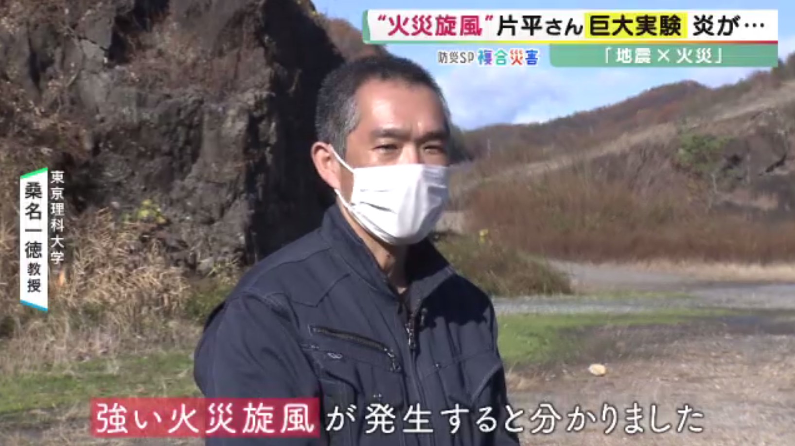 火災旋風を長年研究している東京理科大学の桑名一徳教授を、関西テレビ「報道ランナー」お天気キャスター・片平敦気象予報士が訪ねました。
