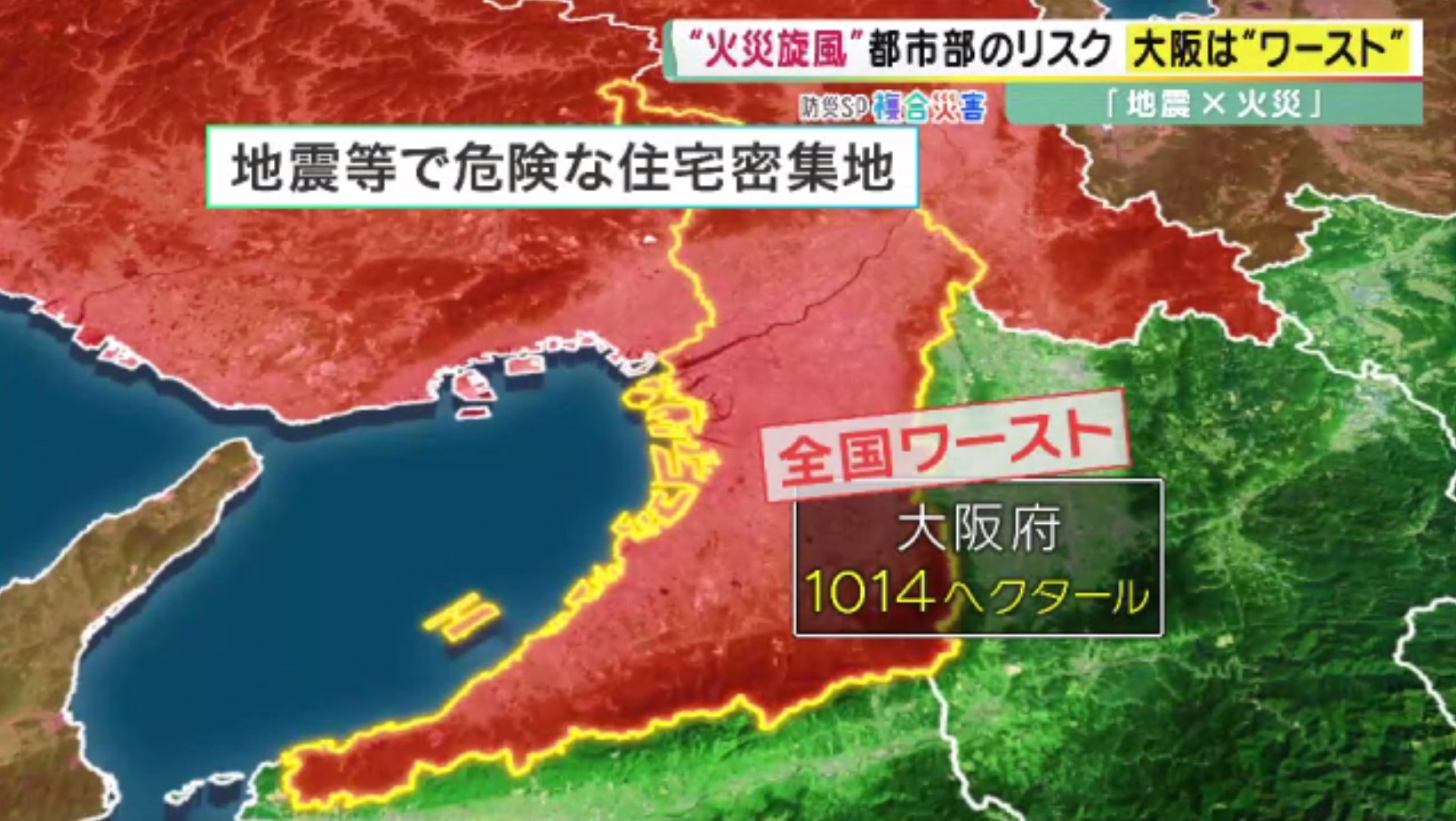 巨大な火災旋風が発生するような、大規模火災の恐れがある地域は数多くあります。そのリスクが著しく高いのが、住宅密集地です。
