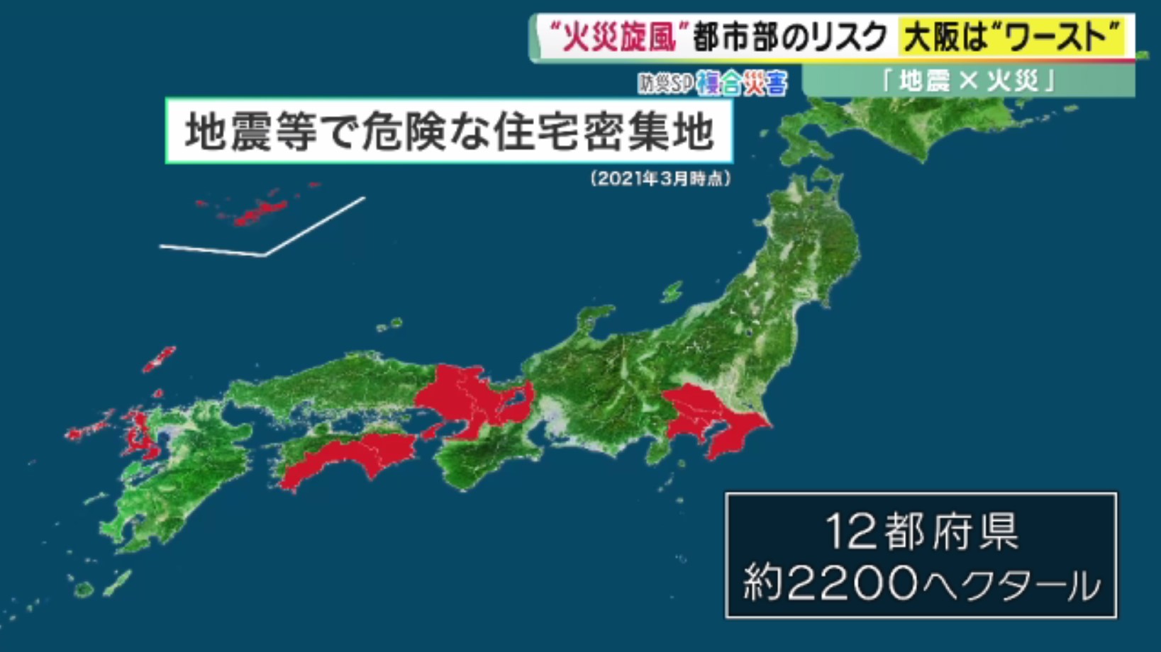 国は2年前、12都府県で危険な密集地がおよそ2200ヘクタールあると公表。