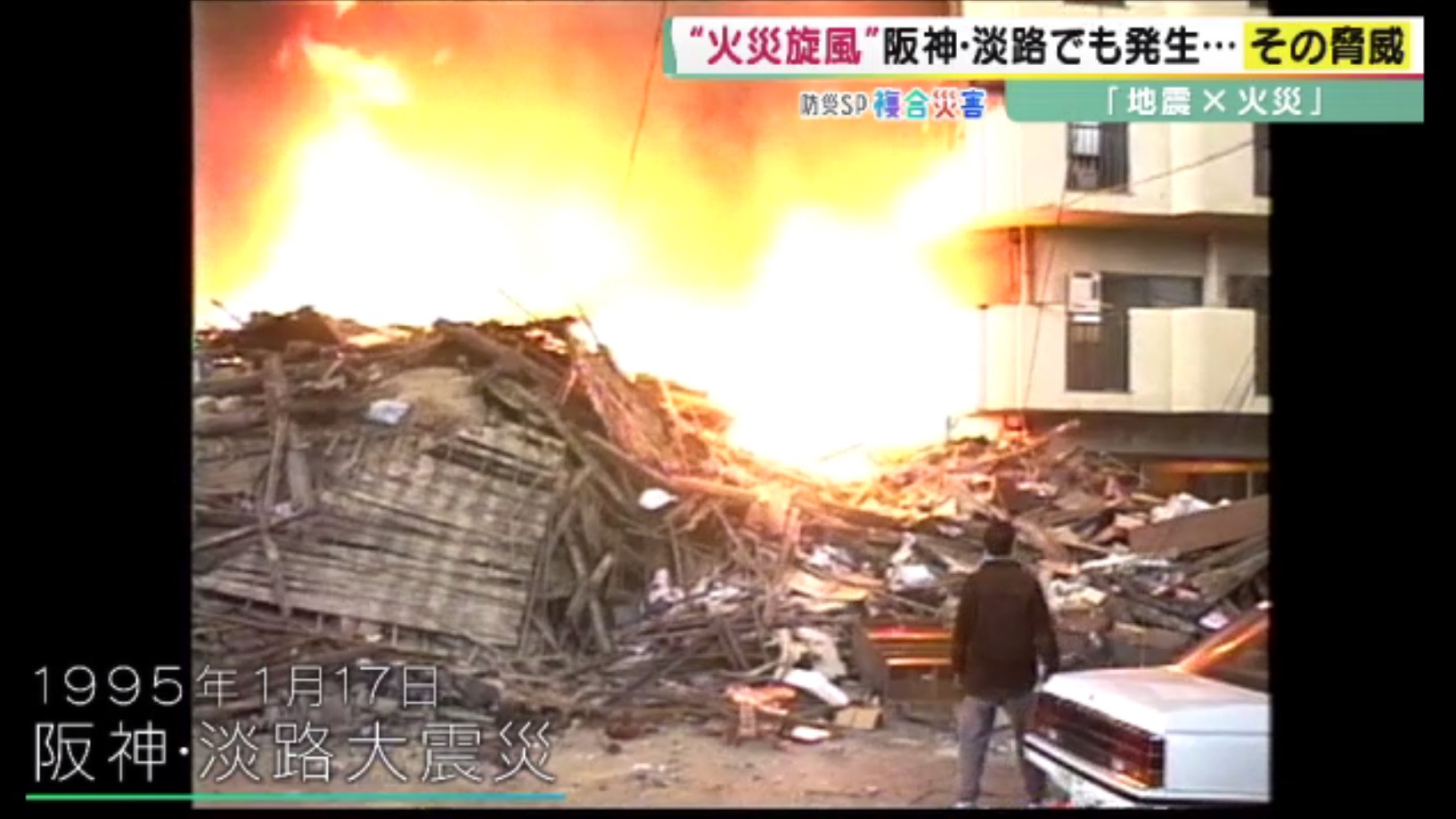 阪神・淡路大震災の時は、火災旋風が発生したとされていますが、強い風は吹かなかったため、延焼がさらに拡大するまでには至らなかったとみられます。