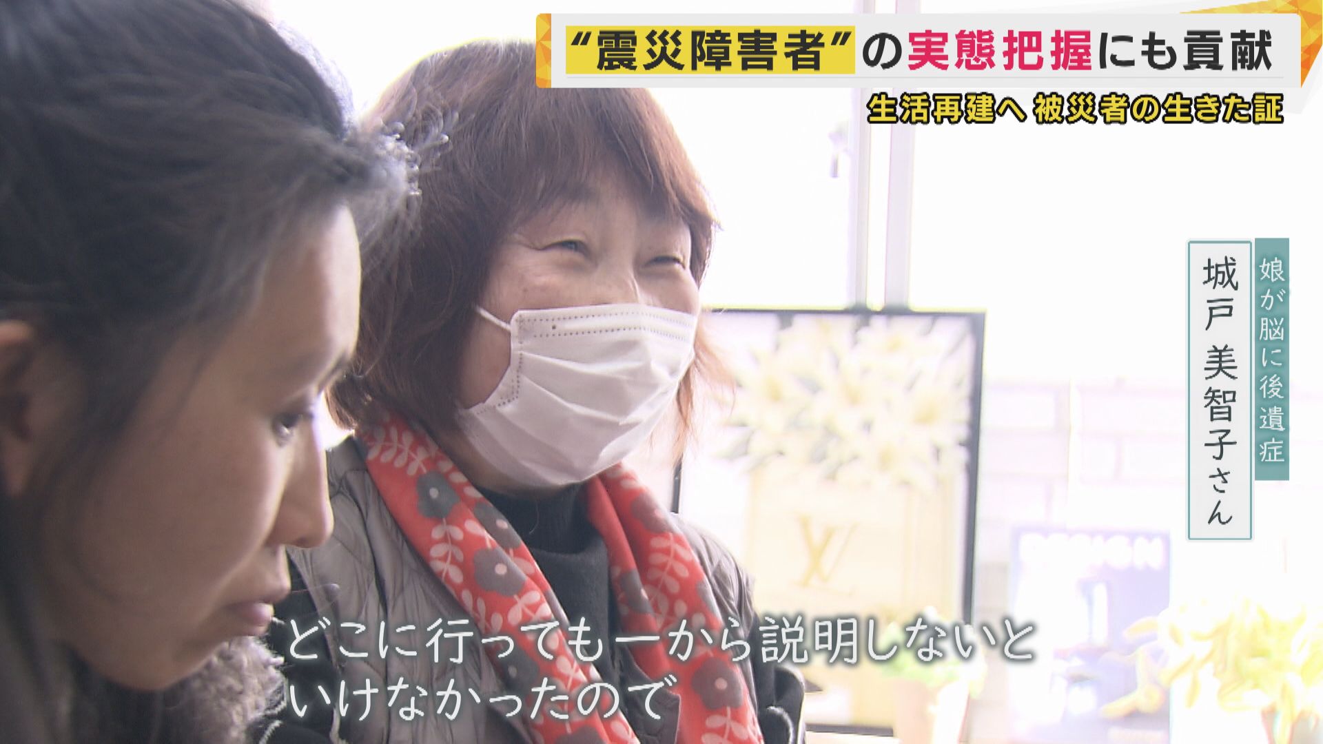 【娘が脳に後遺症・城戸美智子さん】「言葉でどう説明したらいいか、言ってるうちに、自分もだんだんしんどくなってきて。あれができない、これができないとかで落ち込んでくる」 「震災から10年ぐらいは、(娘のことを)誰にも分かってもらえなくて、どこに行っても1から説明しないといけなかったので、よろずに関わってもらって、洋子ちゃんはこういう人と分かってもらえるから、すごく楽」
