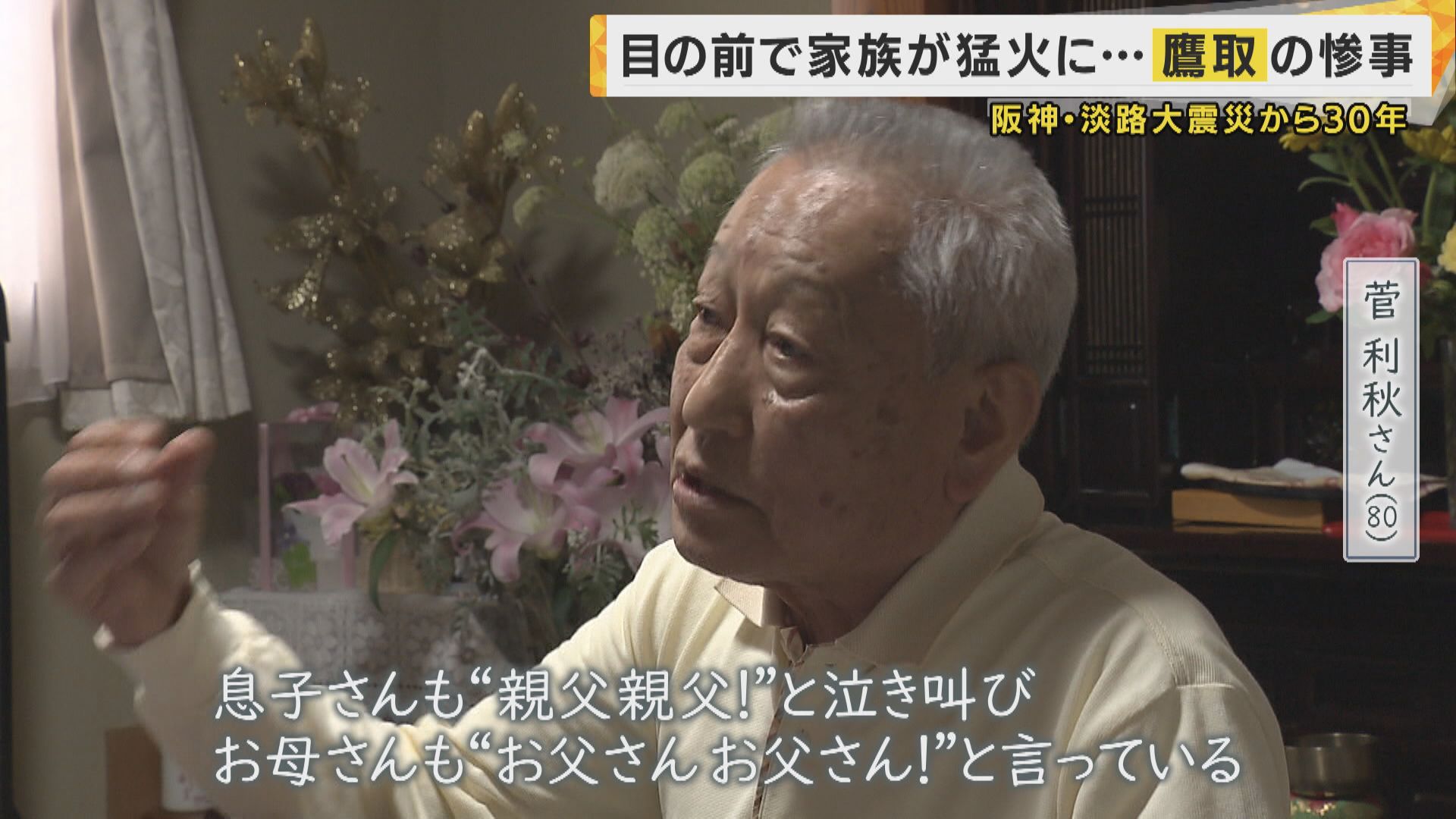 阪神・淡路大震災から30年。神戸市長田区鷹取地区で自治会長を務める菅利秋さんは、震災当時の記憶を語る際、今でも言葉に詰まります。あの日、目の前で起きた悲劇は、30年経った今でも鮮明に記憶に刻まれています。