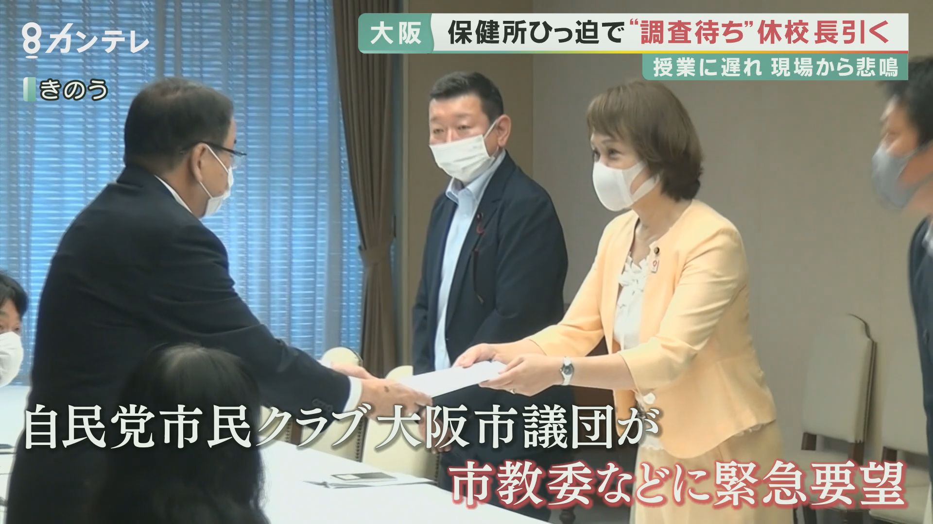 増え続ける学校の休校に、8月31日、自民党市民クラブ大阪市議団は、市の教育委員会などに緊急要望を行いました。