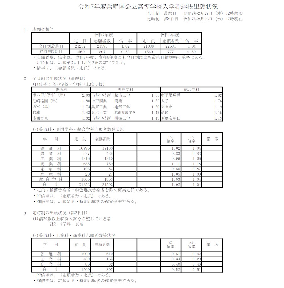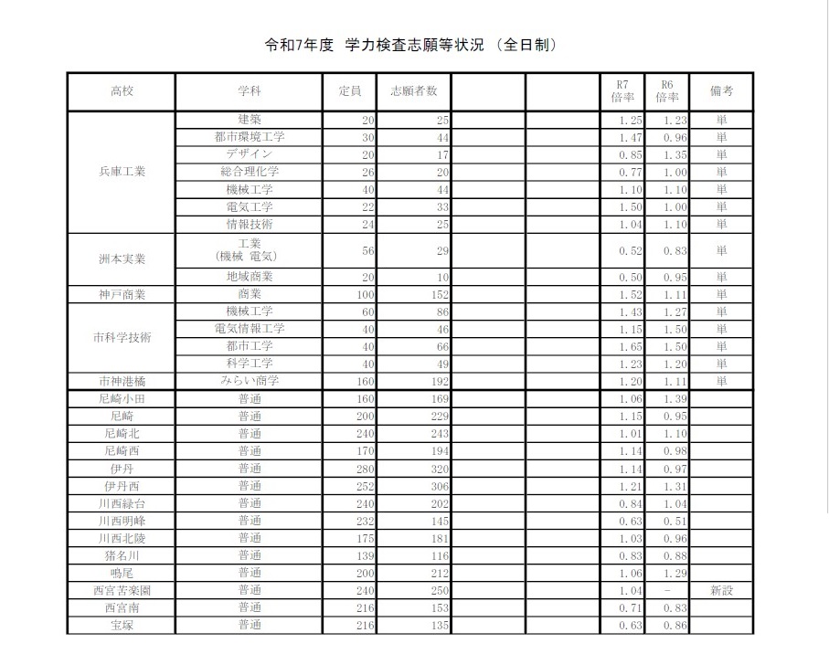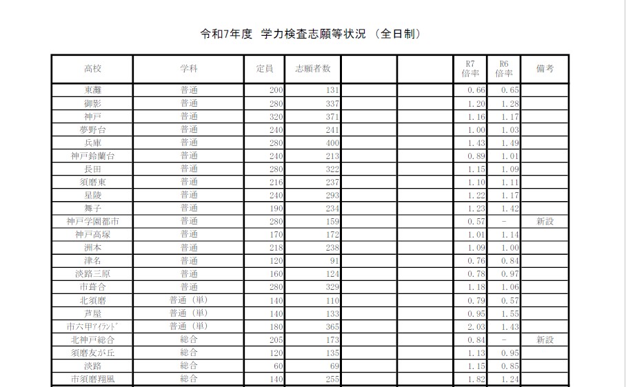【全掲載】兵庫県公立高校入試 全日制志願倍率「1.02倍」 最高倍率は「2.03倍」の神戸市立六甲アイランド高校 2025年02月28日