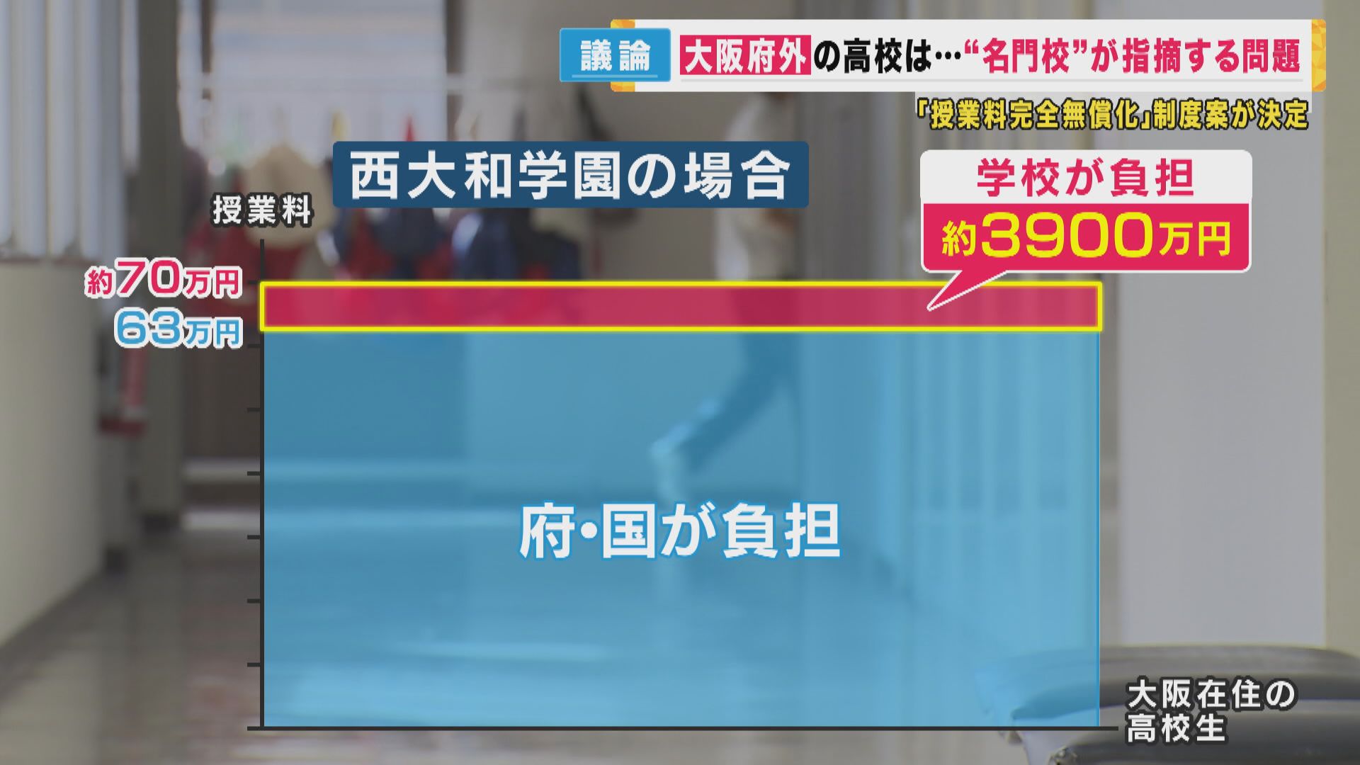 奈良県河合町にある西大和学園高校。毎年、東大や京大に合格者を多数輩出する“名門”と呼ばれる私立高校です。西大和学園の場合、制度の対象となる授業料は1人あたり約70万円のため、63万円を超える分の授業料を負担すると、学校は年間で約3900万円を負担することになります。学校は、負担を賄うために授業料などをもし上げることになれば、いびつな構造を生むと指摘します。