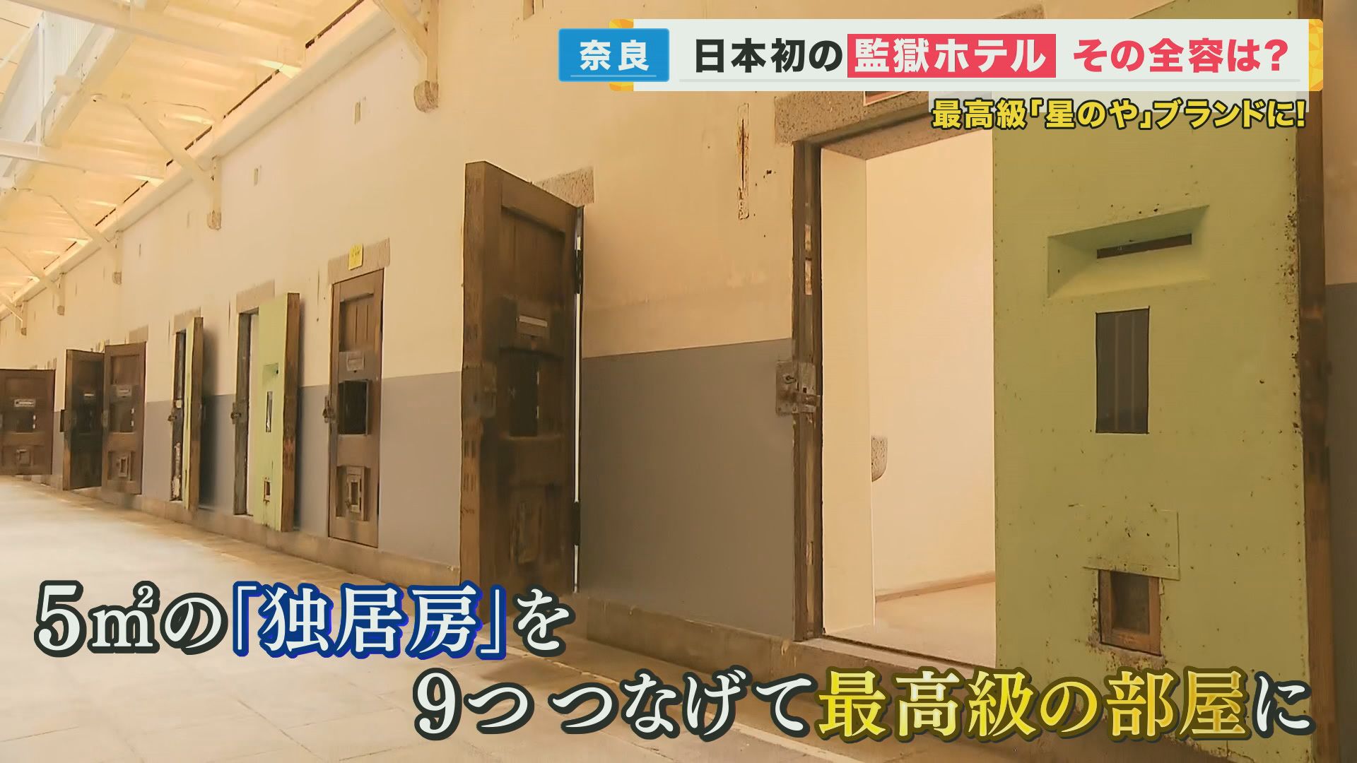 2026年春の開業を目指す「星のや奈良監獄」は、一部屋5平方メートルの「独居房」を9つつなげて最高級の部屋を作るほか、個室のレストランを完備。