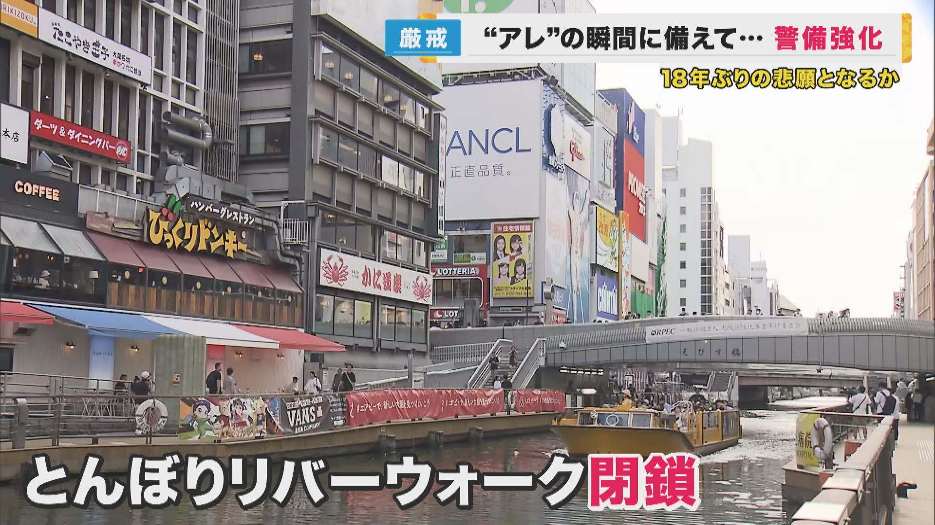 ミナミの街は厳戒態勢 18年ぶりのアレに備えて 前回5000人が飛び込んだ"道頓堀ダイブ"完全封鎖