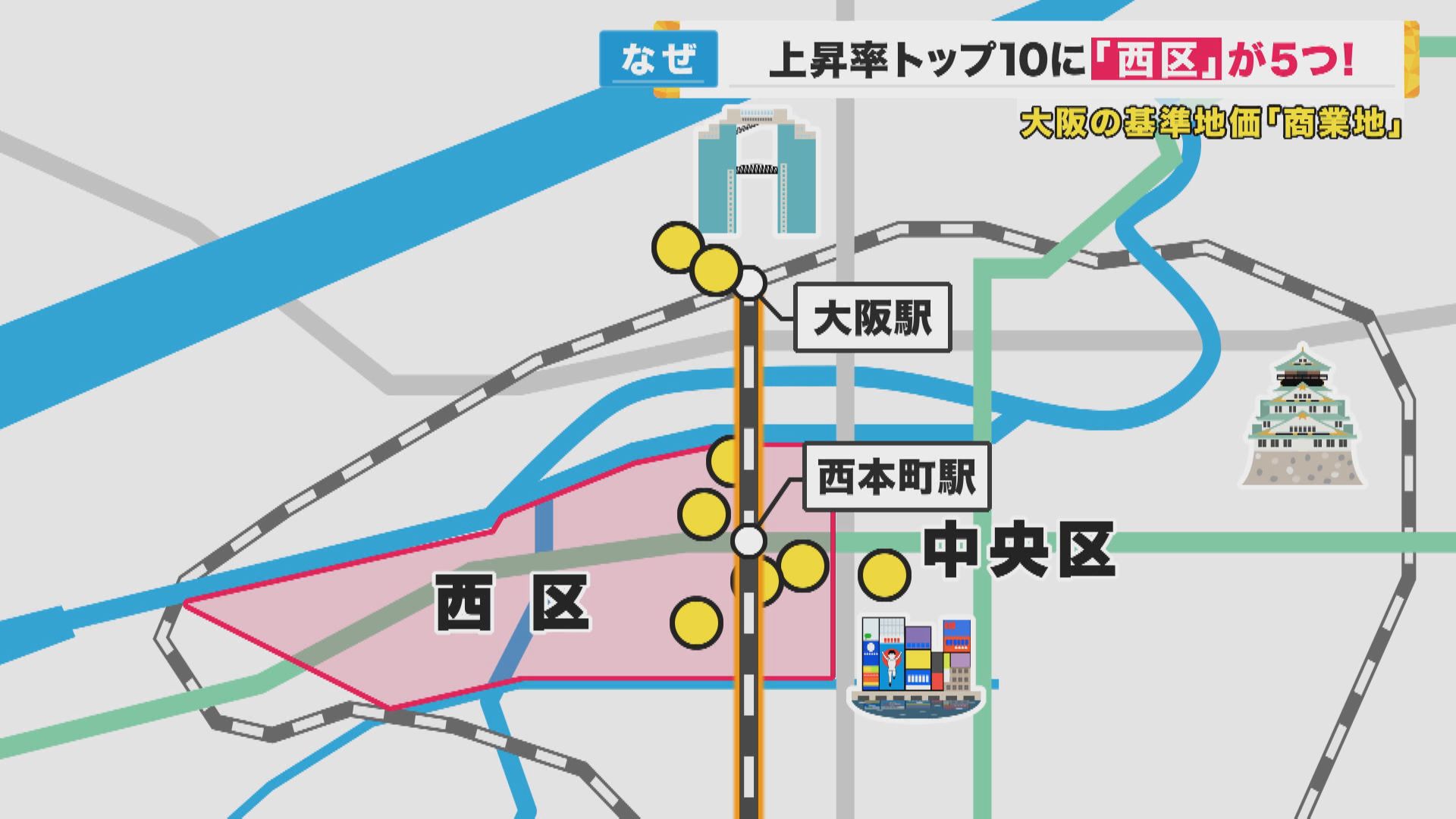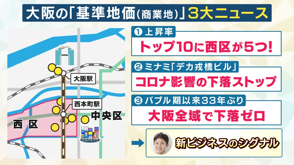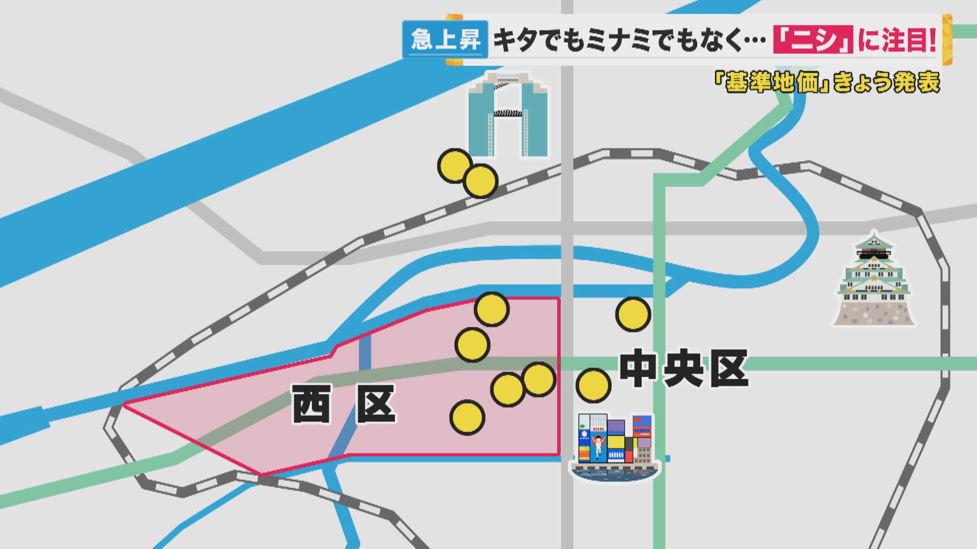 土地取引の基準となる「基準地価」が19日に発表されました。大阪の注目は、「キタ」でも「ミナミ」でもなく「ニシ」です。
