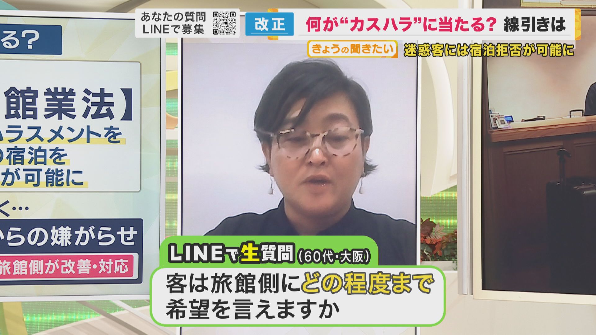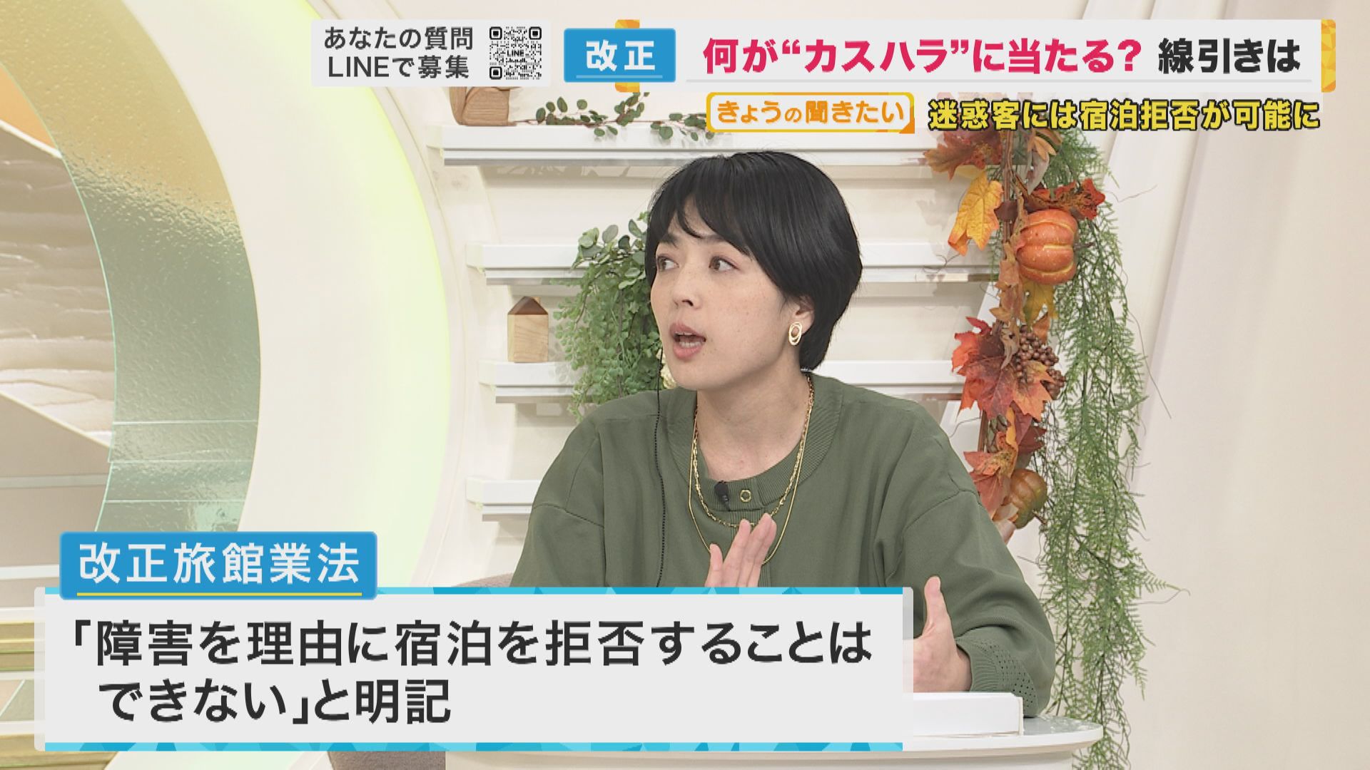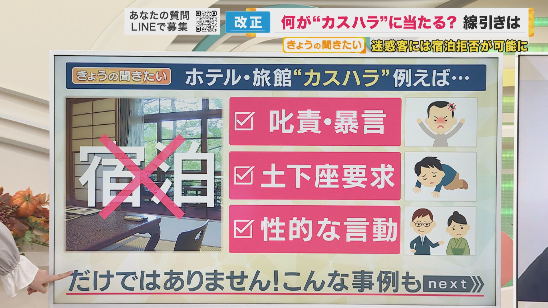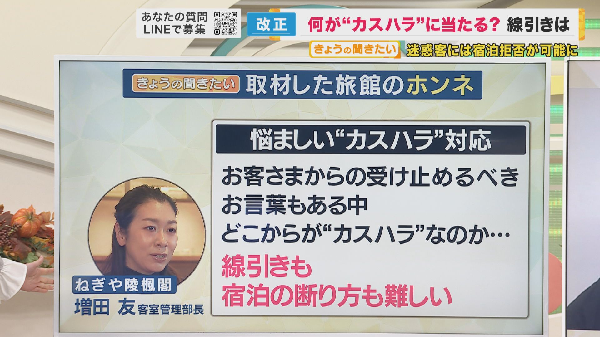旅館からは、「受け止めるべきお客様のお言葉もある中、どこからが“カスハラ”なのか線引きも宿泊の断り方もすごく難しい」といった声も聞かれます。法が施行されることで、旅館側のとまどう気持ちも解消されていくのでしょうか?