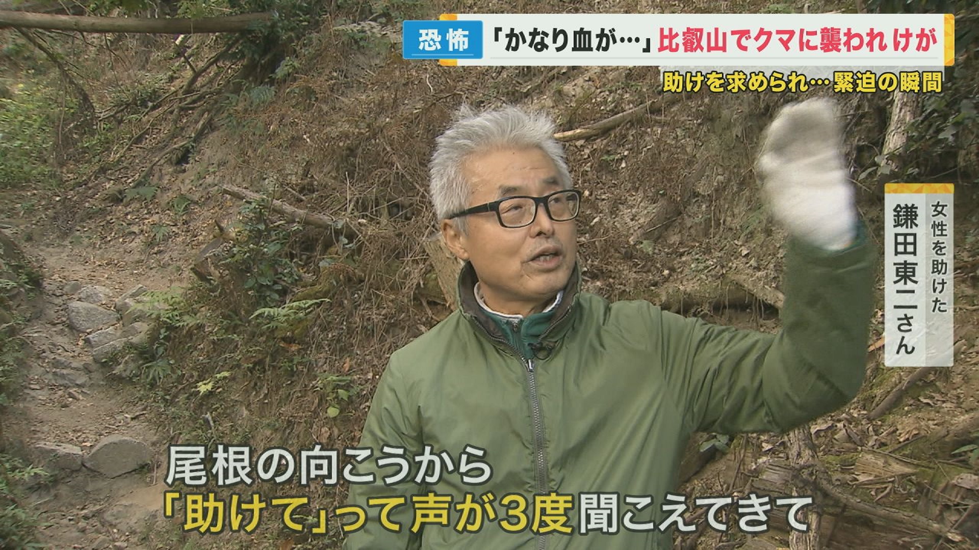 15年前から比叡山に登っている鎌田東二さん(72)は、今年の山の日に京都市左京区の比叡山でクマに襲われ大けがをした女性を助けました。