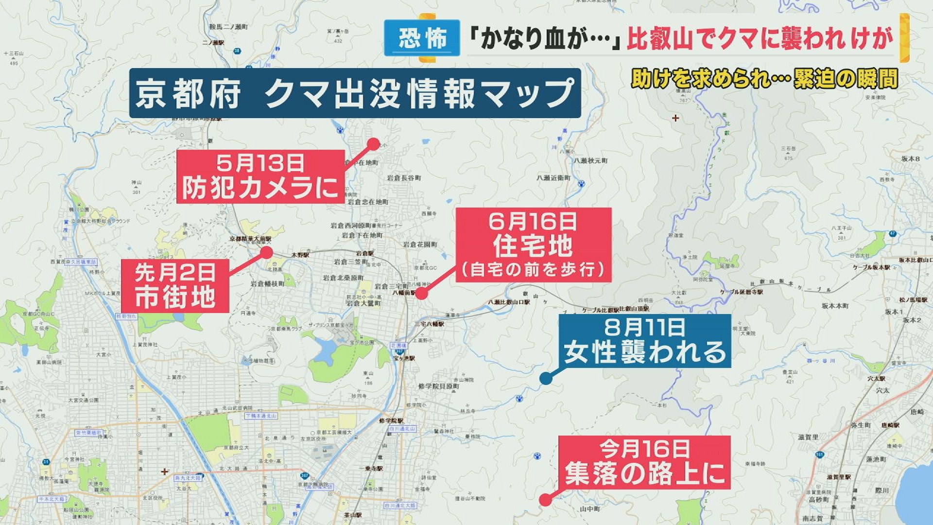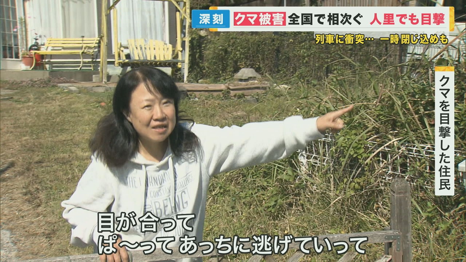 「昨日夜、滋賀県大津市の民家の目の前でもクマが目撃されたということです」