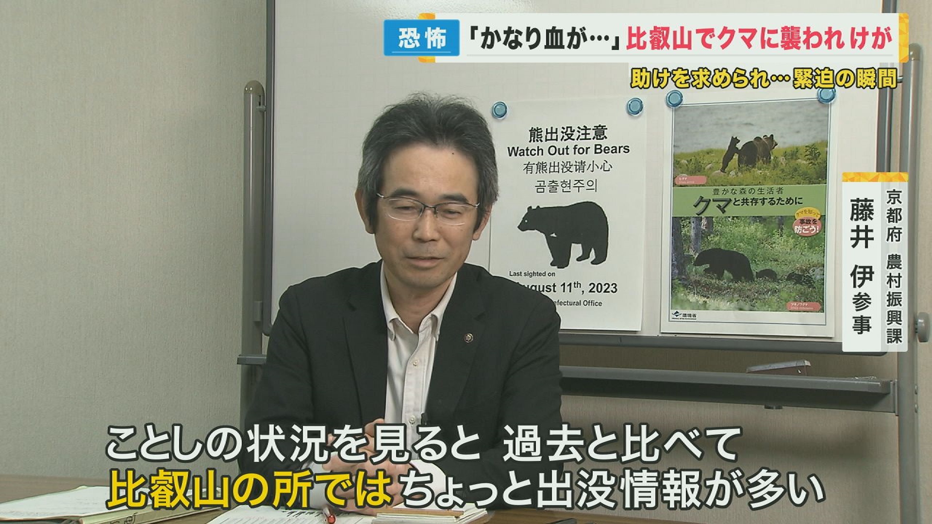 「今年は目撃が多いですね。今年の状況を見ると、過去と比べて比叡山の所ではちょっと出没情報が多いですね」